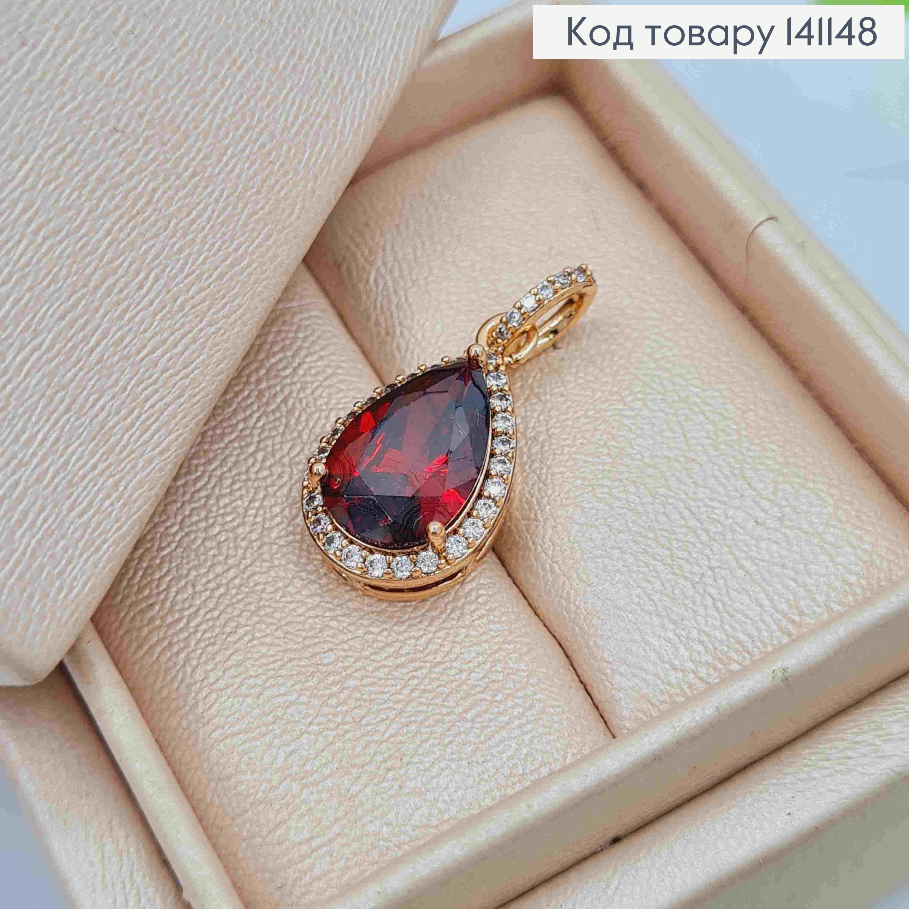 Кулон "Капелька" Красный камень в оправе из камней, размер 1,8см, Xuping 18K