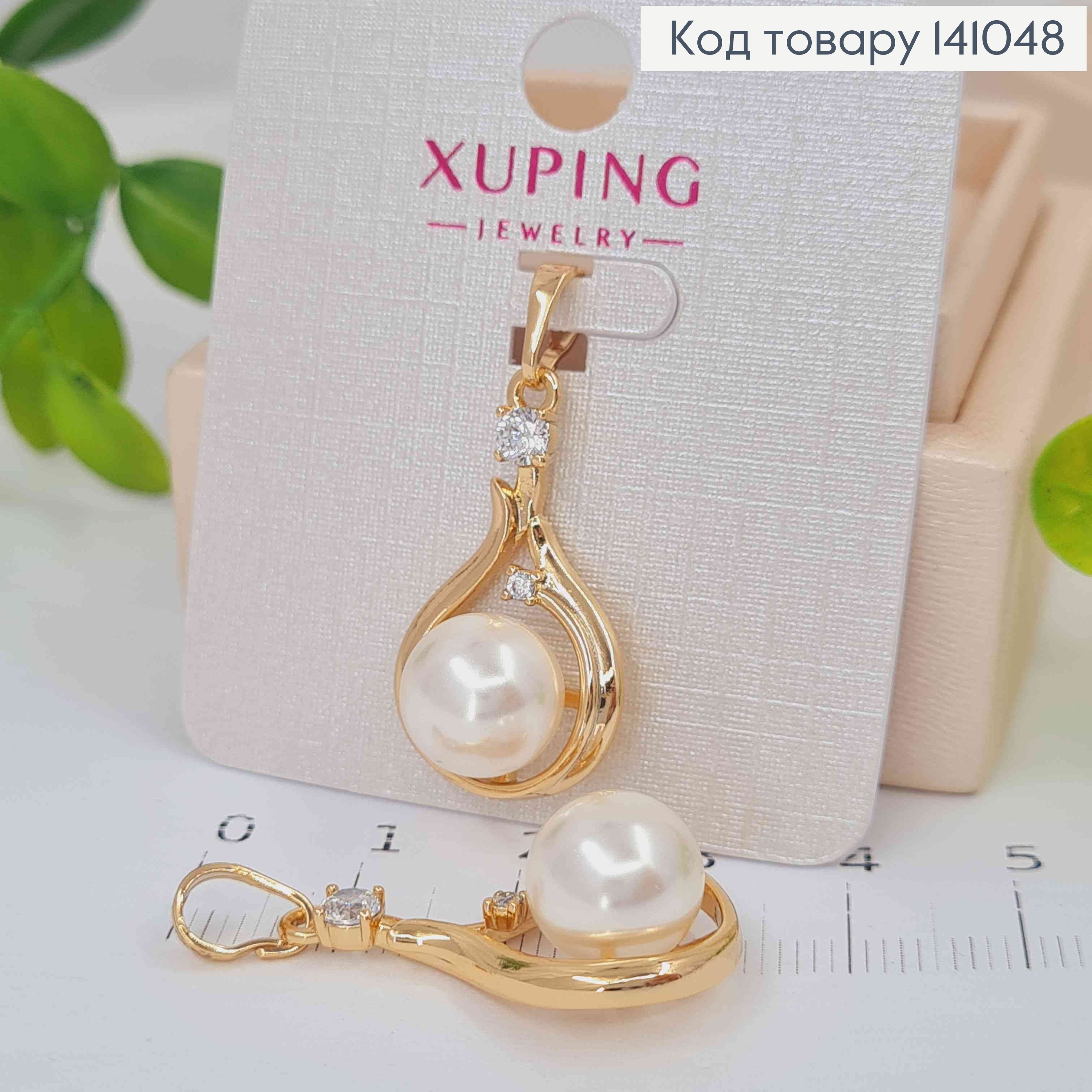 Кулон с жемчужкой и блестящими камешками, размер 1,3см, Xuping 18K. 141168 фото
