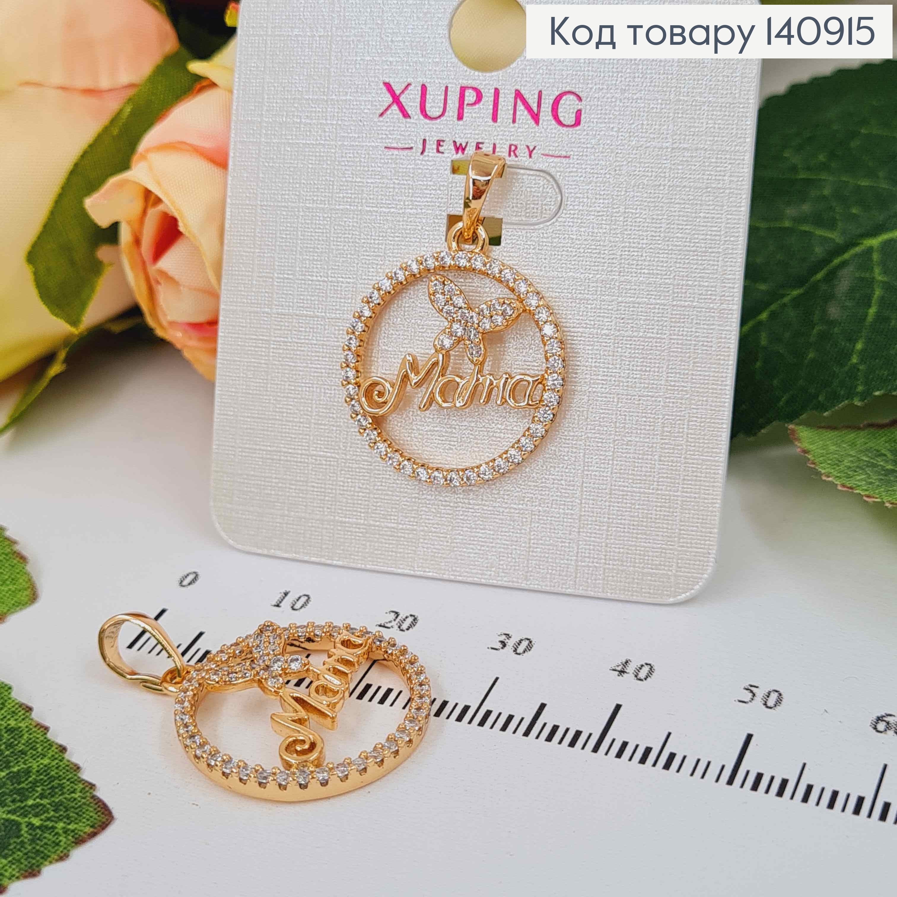 Кулон, "Мама" с бабочкой и в оправе из камней, 2см, Xuping 18K