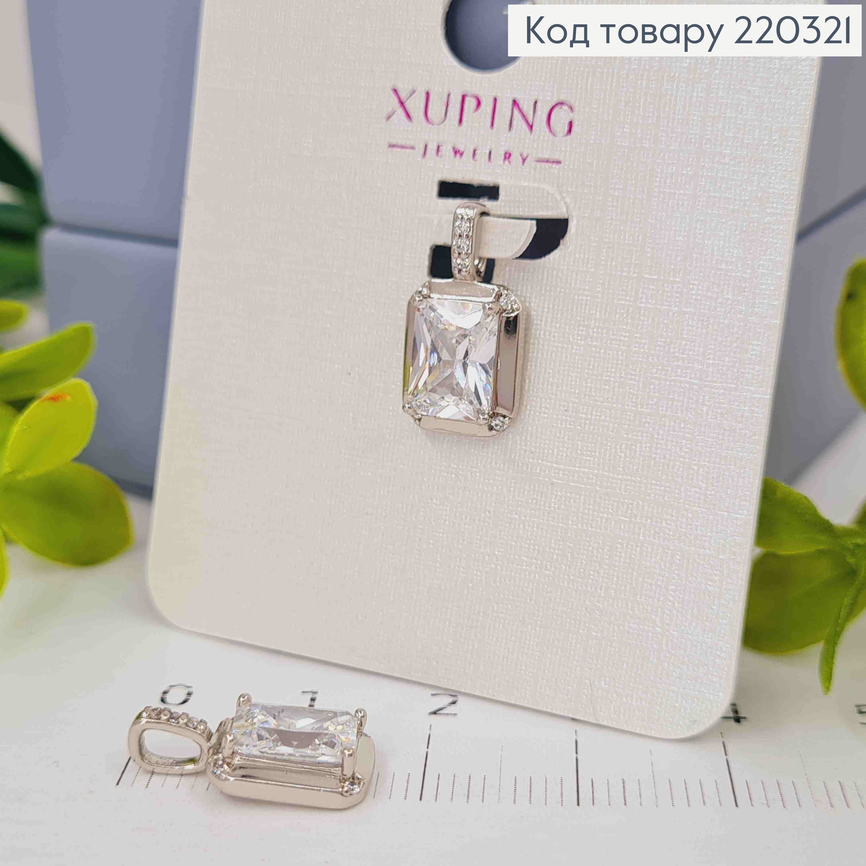 Кулон родованный, Квадратный Блестящий камень, 1,6 см, Xuping