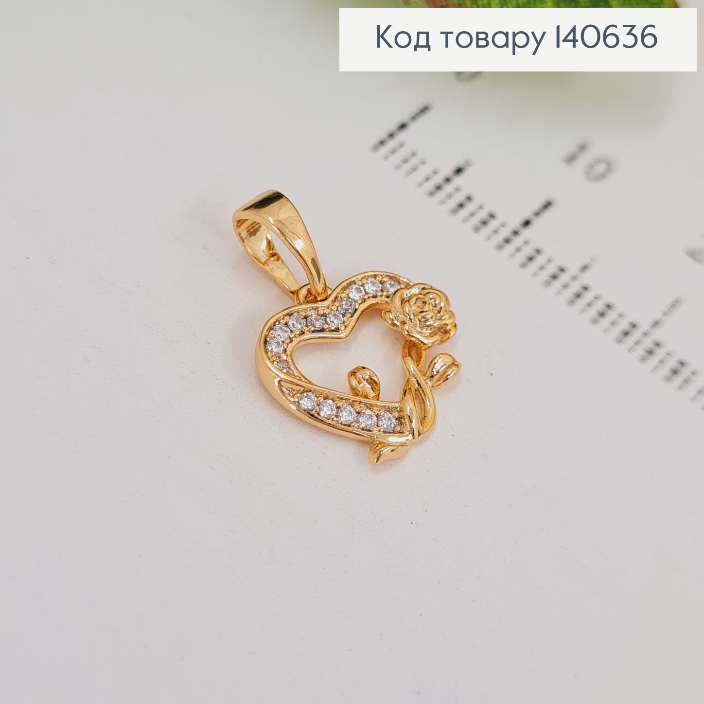 Кулон Сердце в камнях с розой, 1,2*1см, Xuping 18K