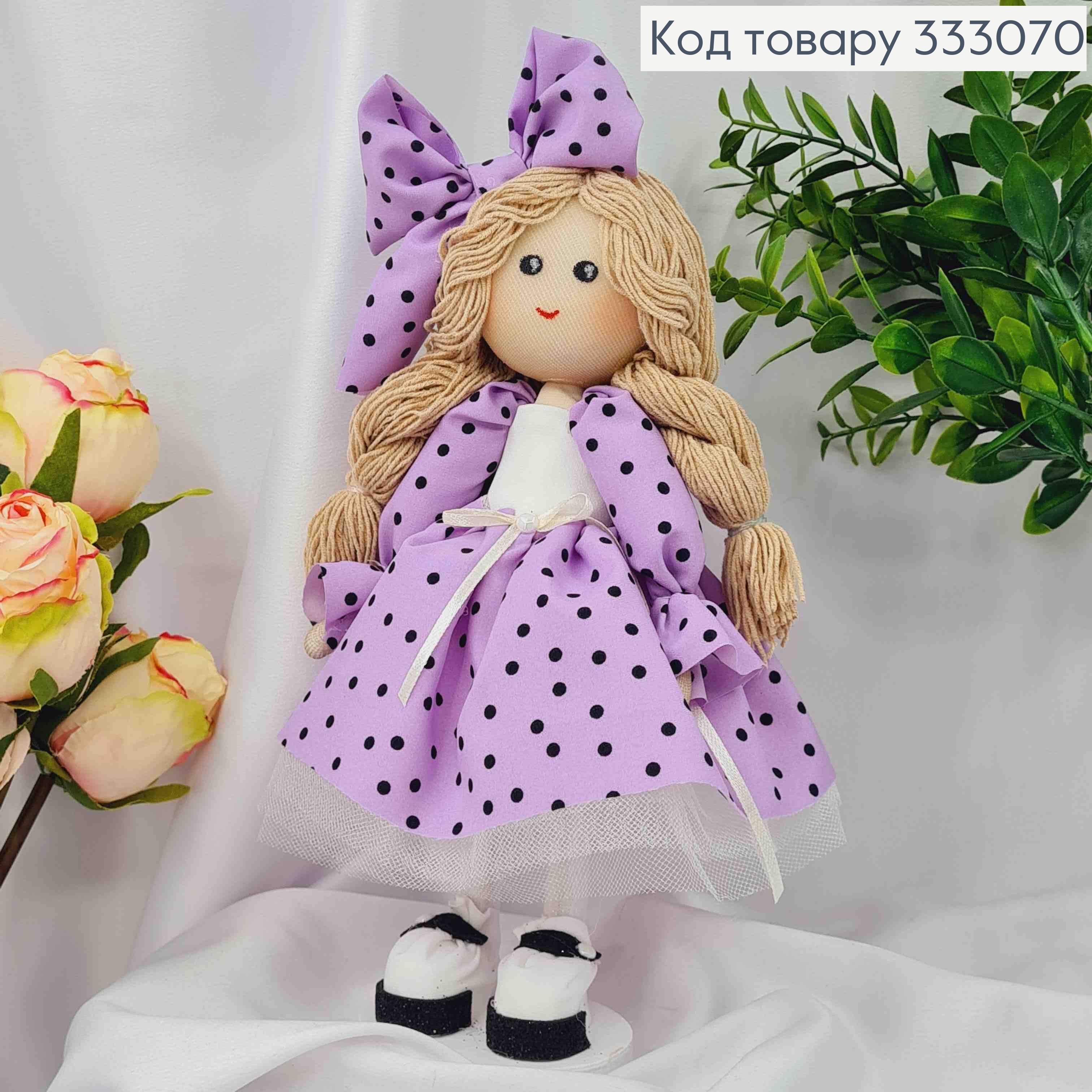 Кукла Девочка в платье Фиолетовом в горошек, высота 28см, ручная работа, Украина