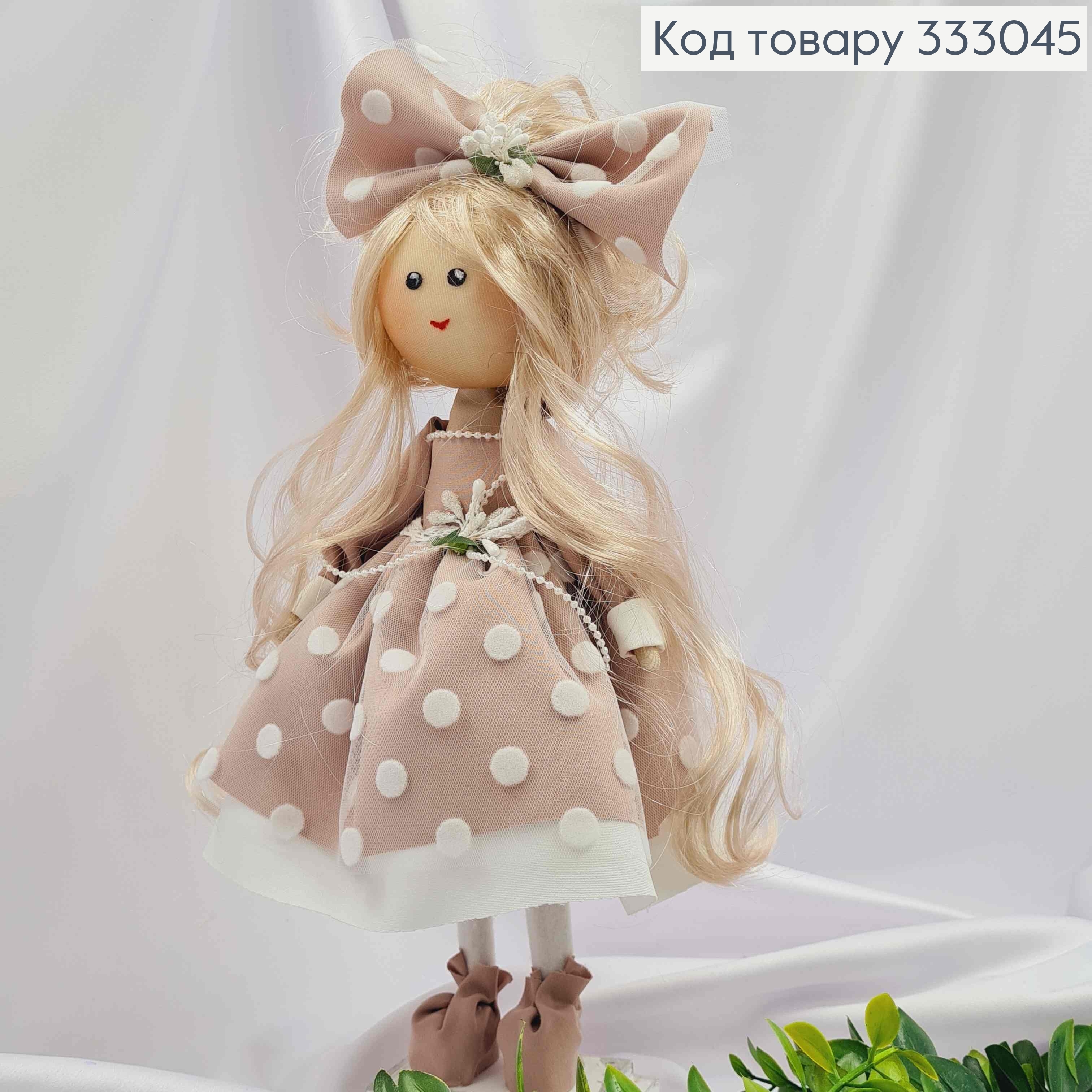 Кукла Девочка, "Варвара" в пудровом в горошек платье (35см), ручная работа, Украина.