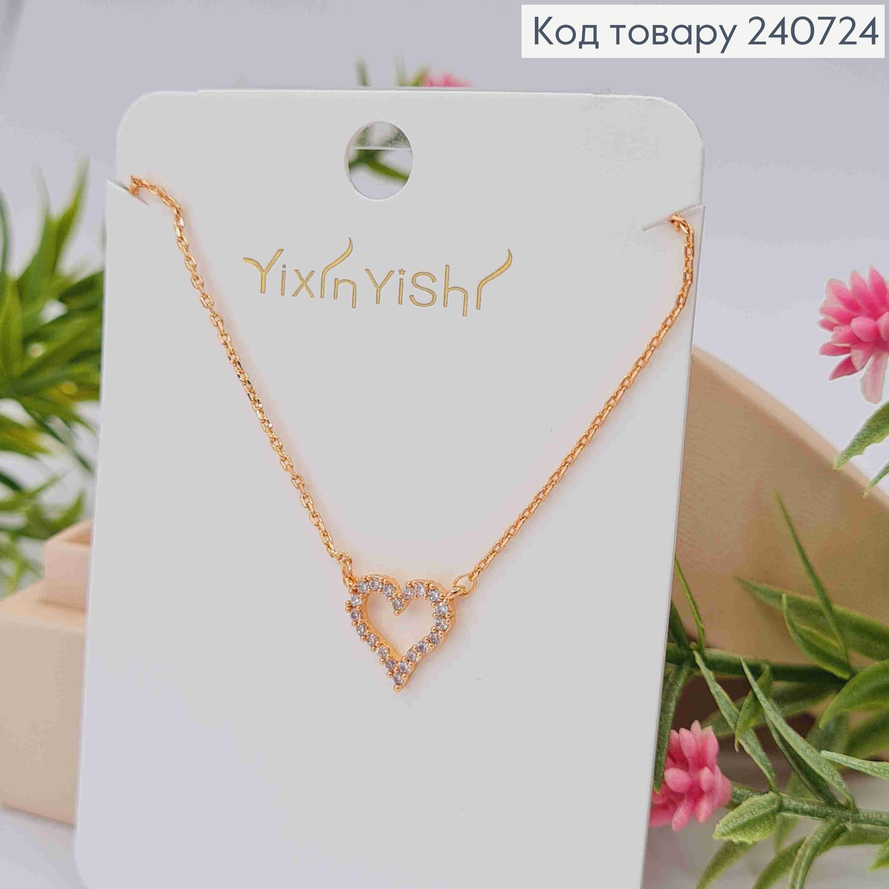 Цепочка медного цвета, с подвеской "Сердце" в камнях(1см), 42+5см, сталь Yixin Yishi