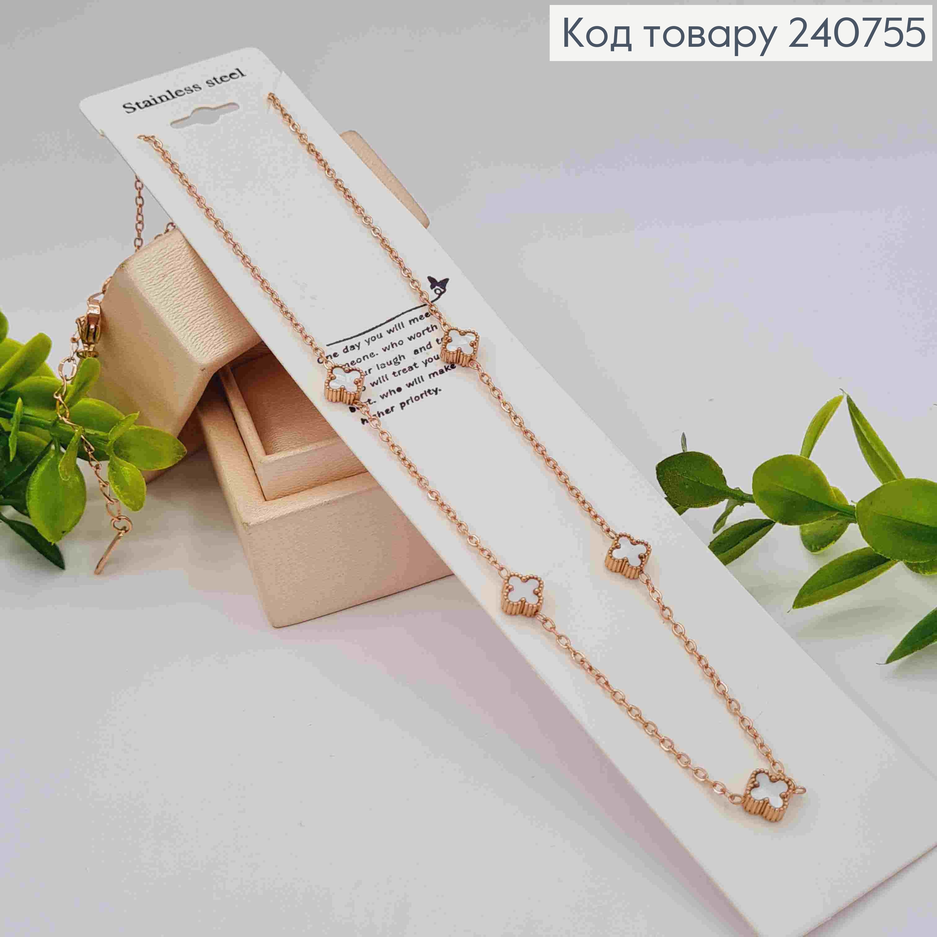 Цепочка медного цвета, с подвесками Van Cleef с перламутровой эмалью, 43+5см, Stainless Steel 240759 фото