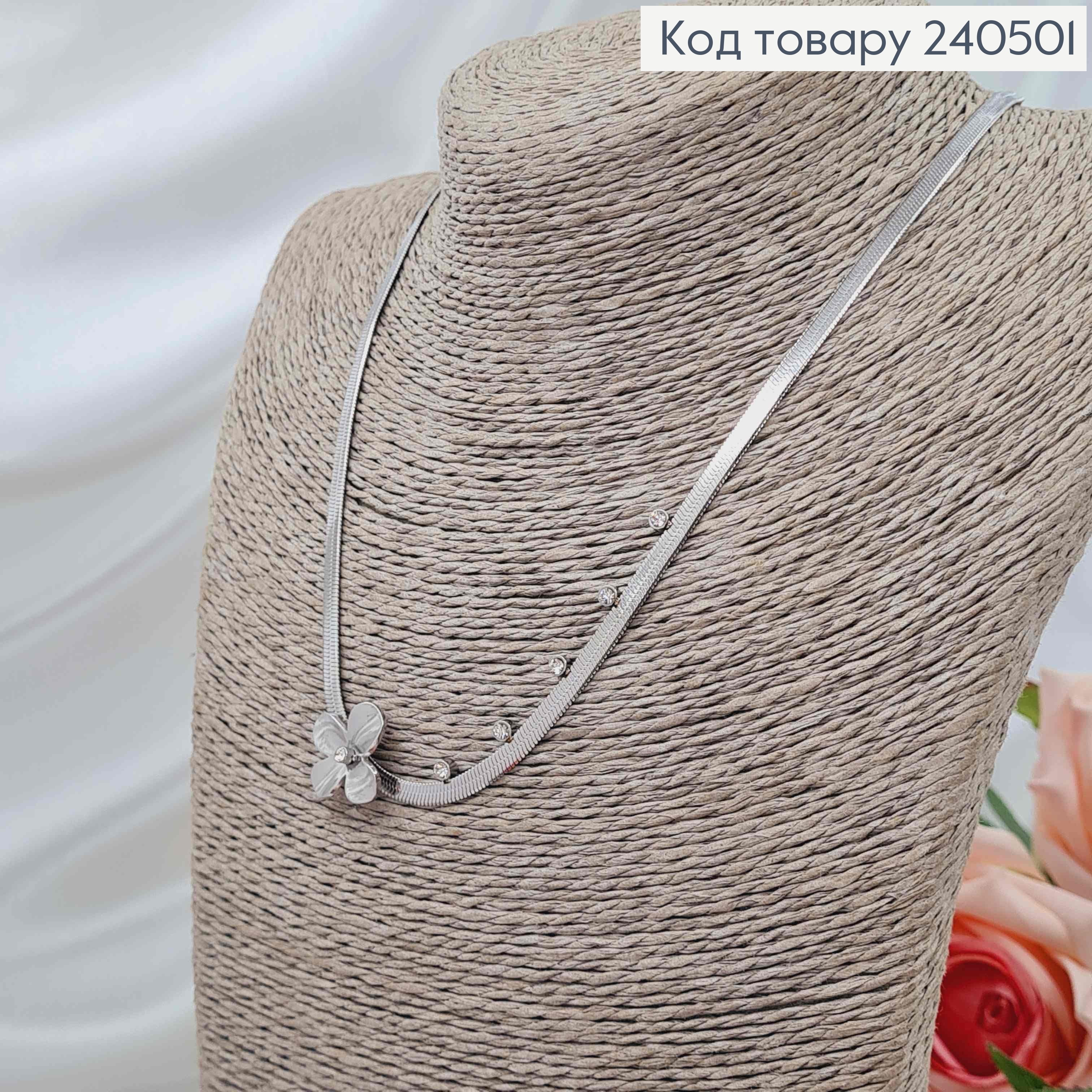 Цепочка плоская, серебряного цвета, с подвеской Цветами и камушками, 40+5см, сталь Stainless Steel