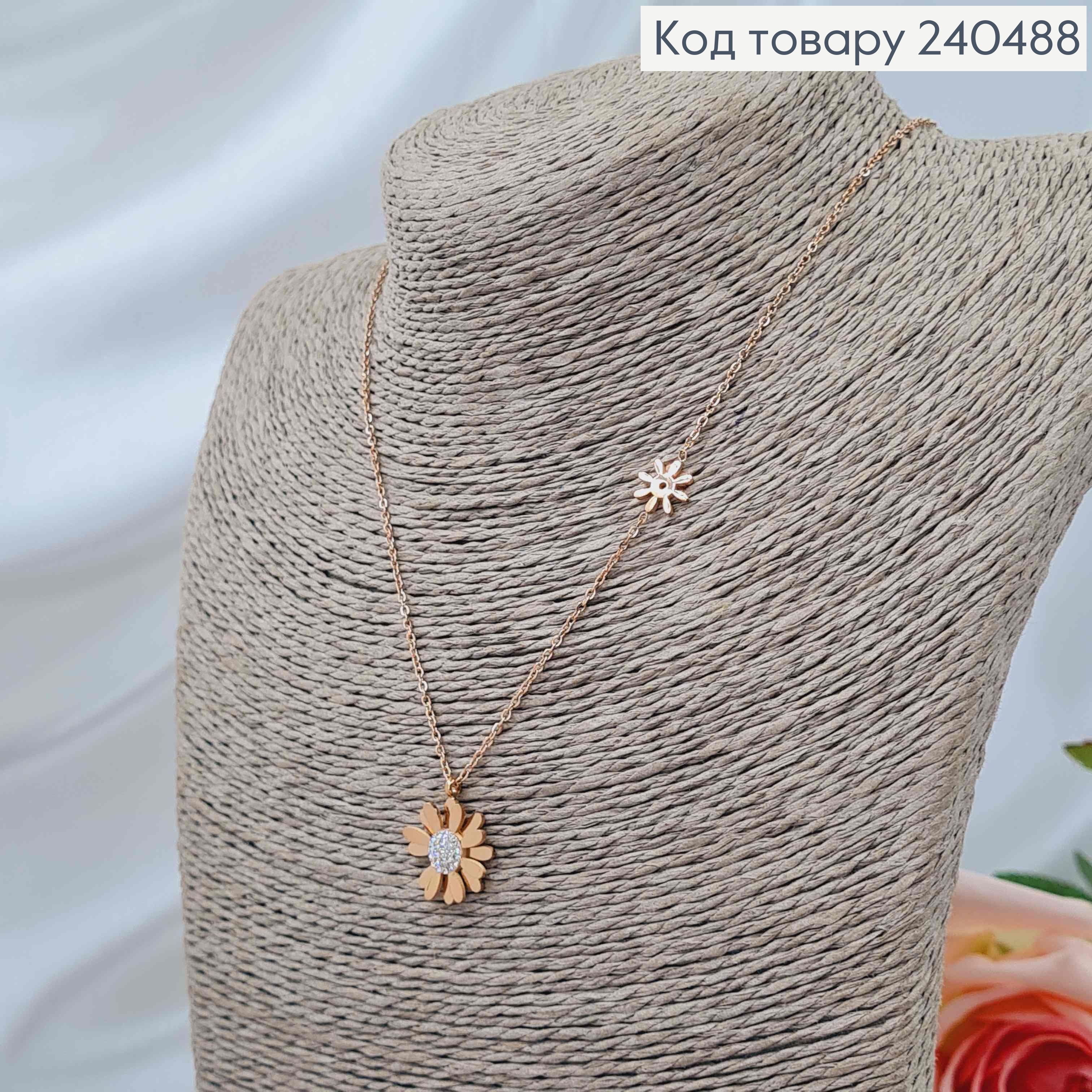 Цепочка, золотого цвета, с подвеской Цветочком с камнями, 40+5см, сталь Stainless Steel