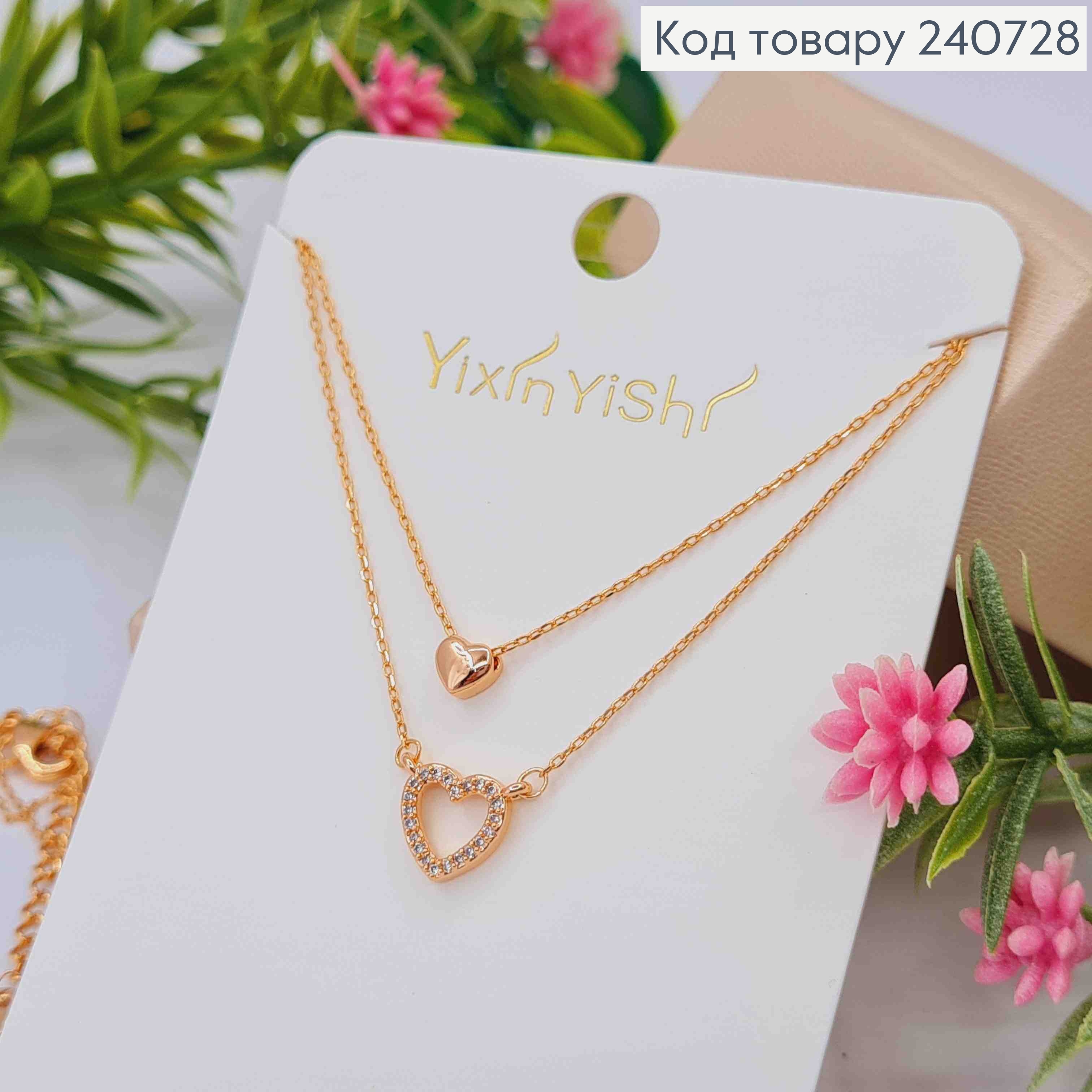 Цепочка двойная с подвеской "Сердце" с Блестящими камешками (8мм), 41+5см, сталь Yixin Yishi
