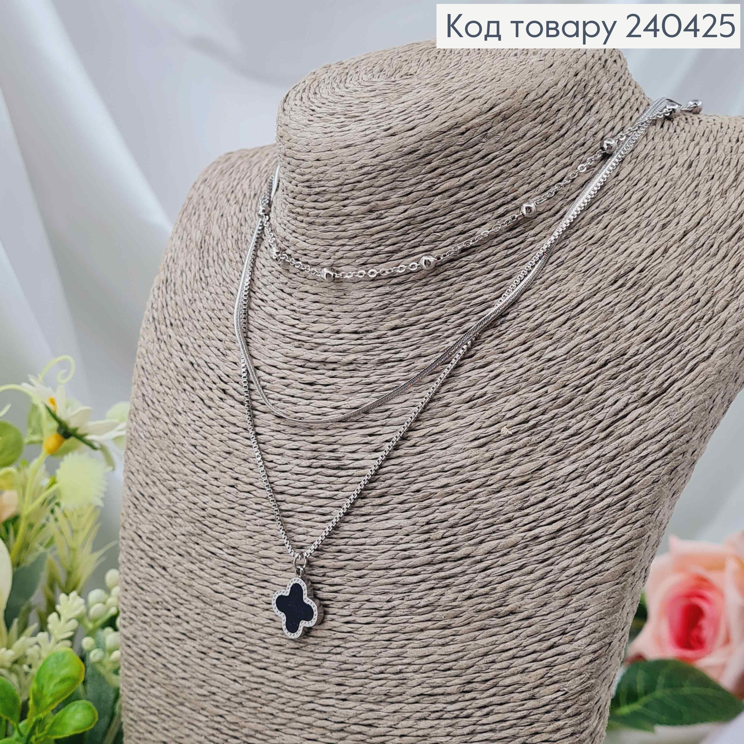 Цепочка тройная, Van Cleef, Черная подвесочка, с шариками, дл. 40+5см, Stainless Steel