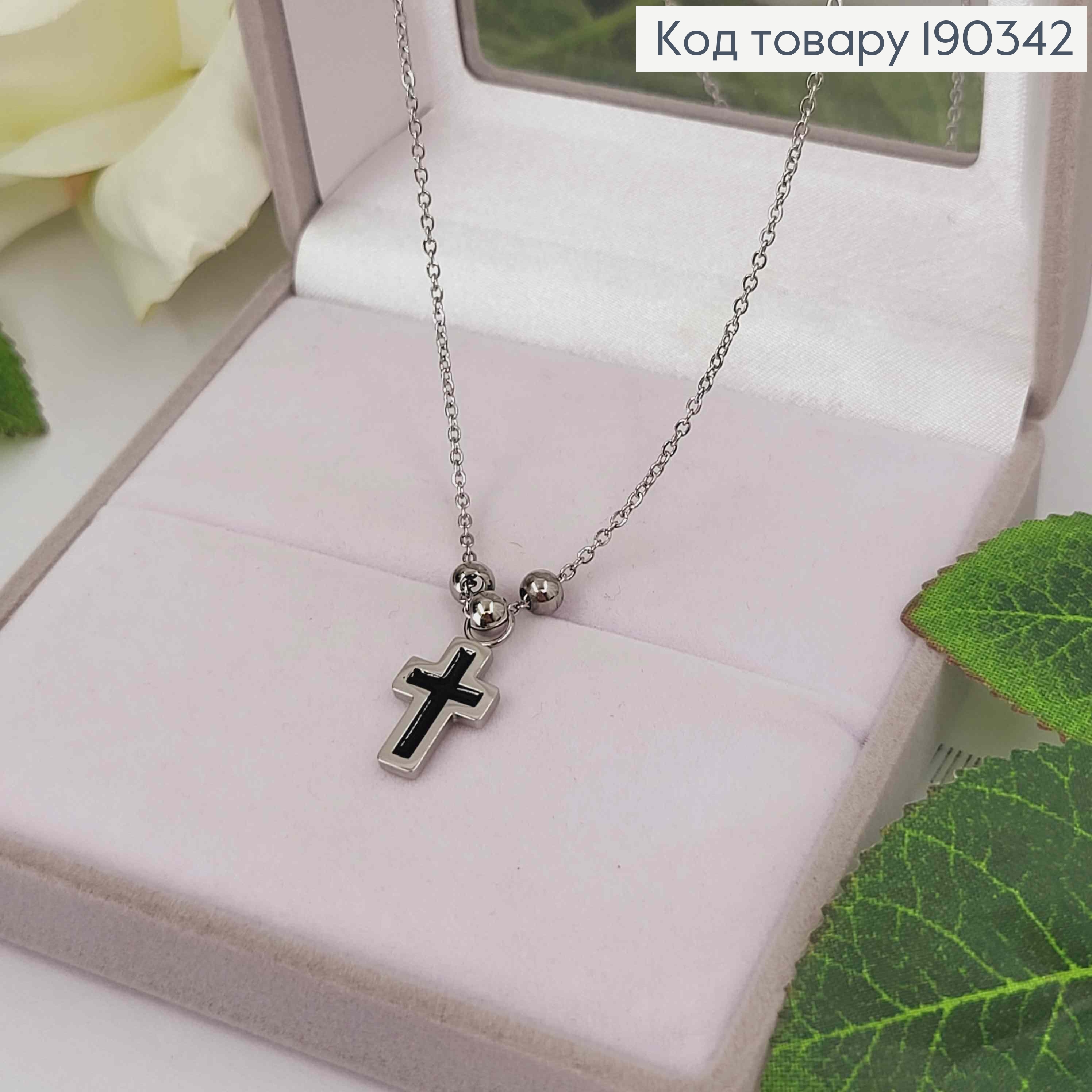 Цепочка родована с подвеской крестиком с черной эмалью 1,5*1см, и шариками, дл. 46+5см, Stainlles Still