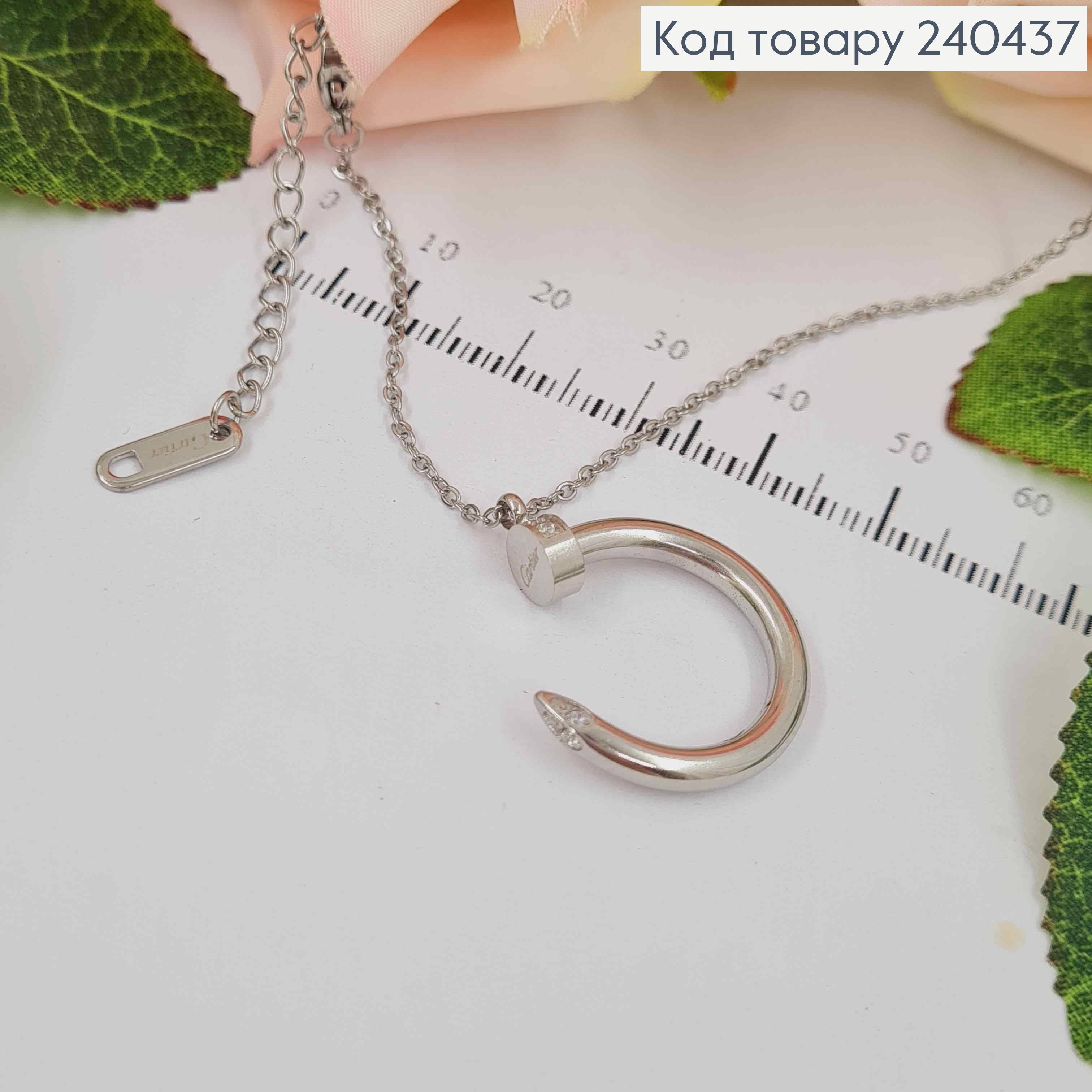 Цепочка серебряного цвета, Гвоздь Картье, с камнем, дл. 40+5см, Stainless Steel