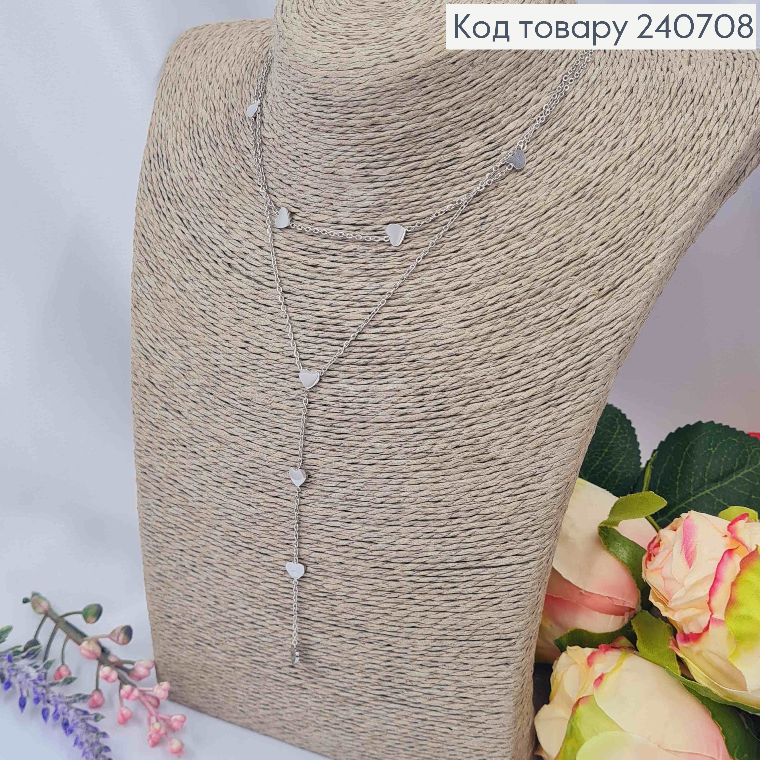 Цепочка серебряного цвета двойная с Сердечками и удлинителем, 46+5см, сталь Stainless Steel