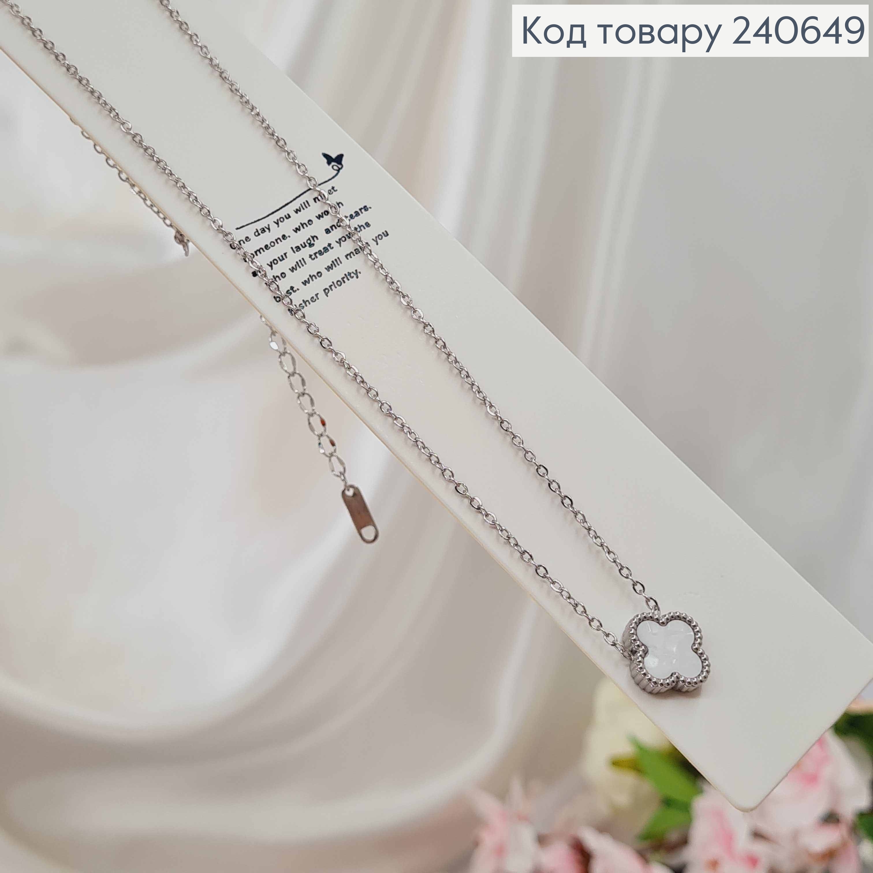 Цепочка серебряного цвета, с подвеской Van Cleef с перламутровой эмалью, 44+5см сталь Stainless Steel 240756 фото
