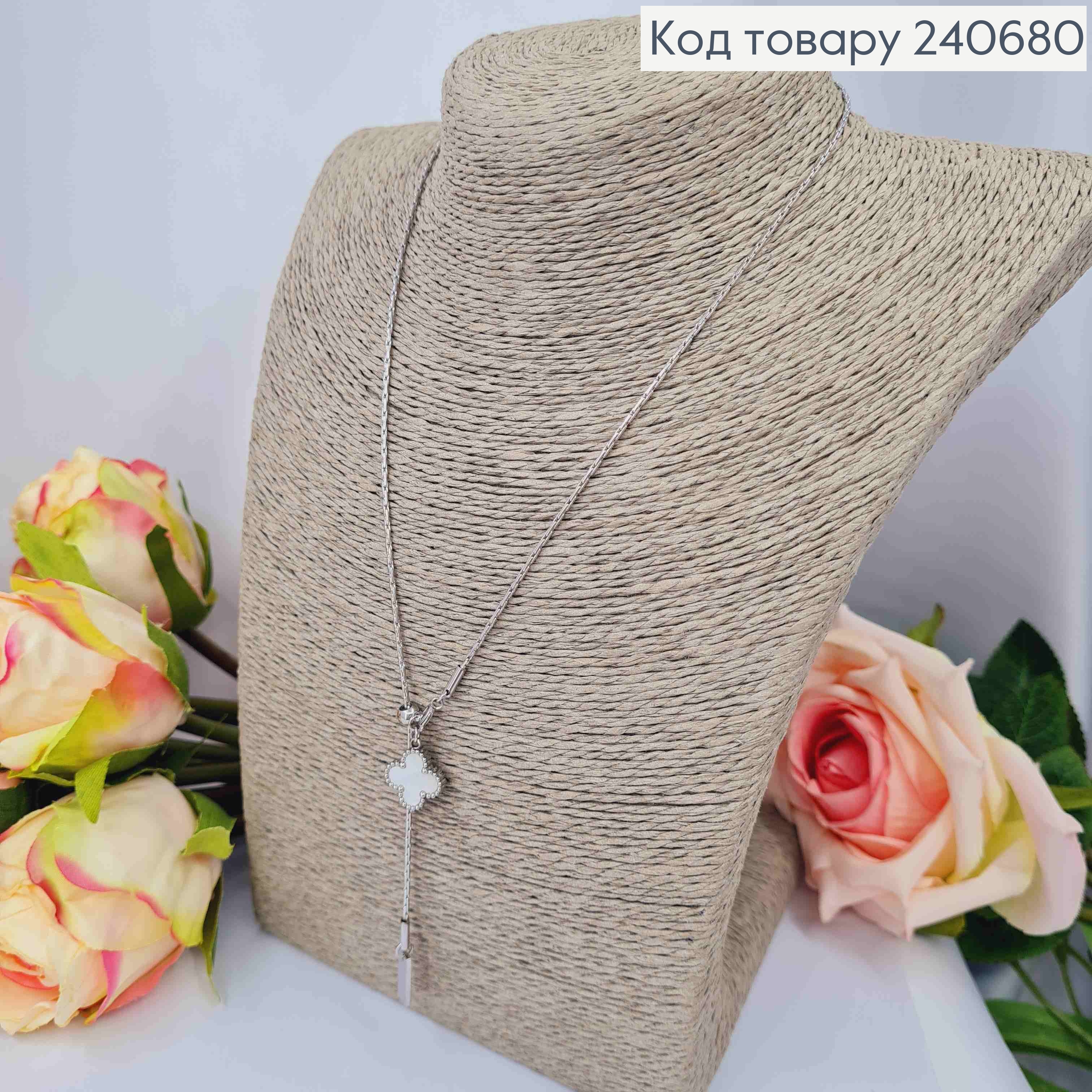 Цепочка серебряного цвета, с подвеской Van Cleef с перламутровой эмалью, 44+5см сталь Stainless Steel 240756 фото