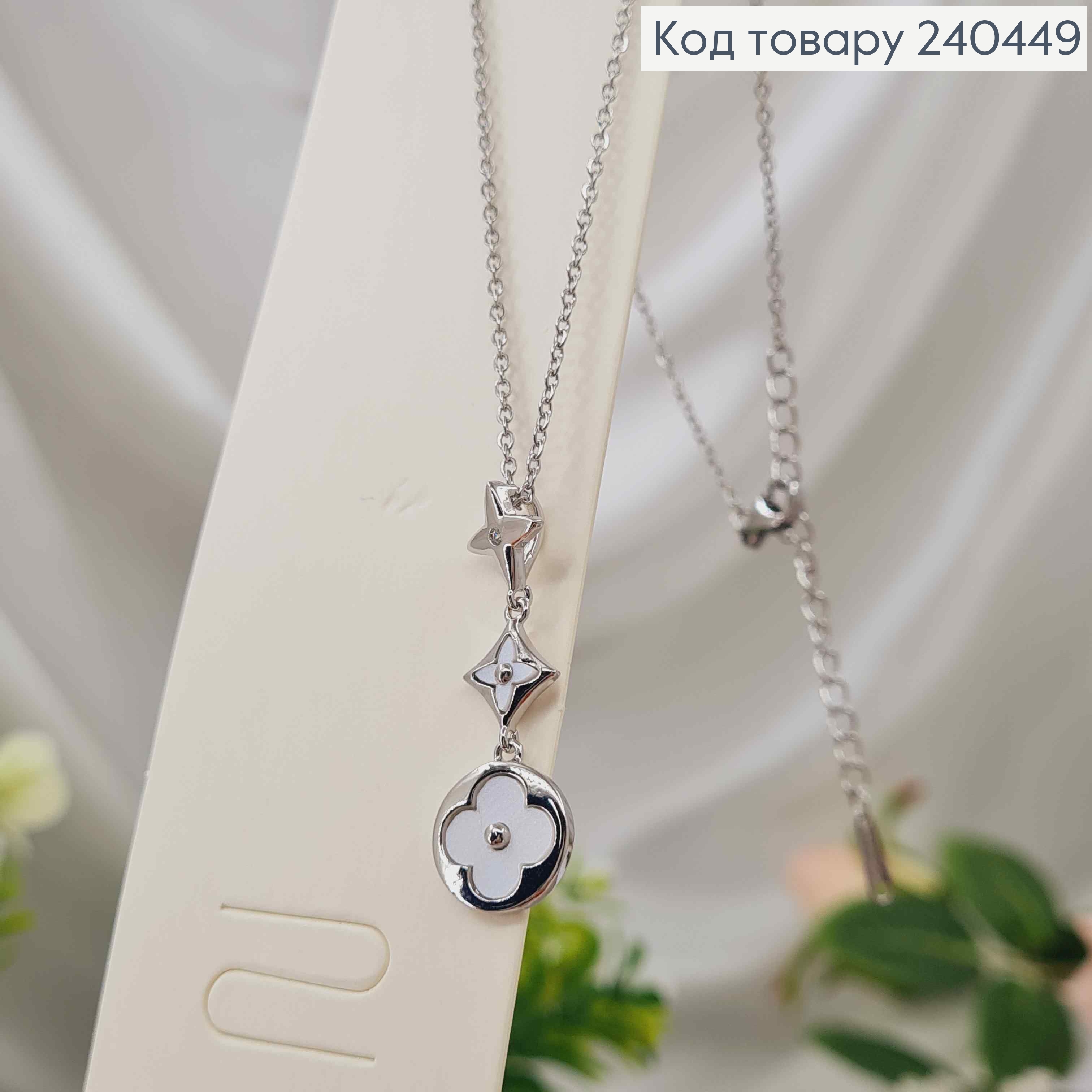 Цепочка серебряного цвета, с подвеской Van Cleef с перламутровой эмалью, 44+5см сталь Stainless Steel 240756 фото