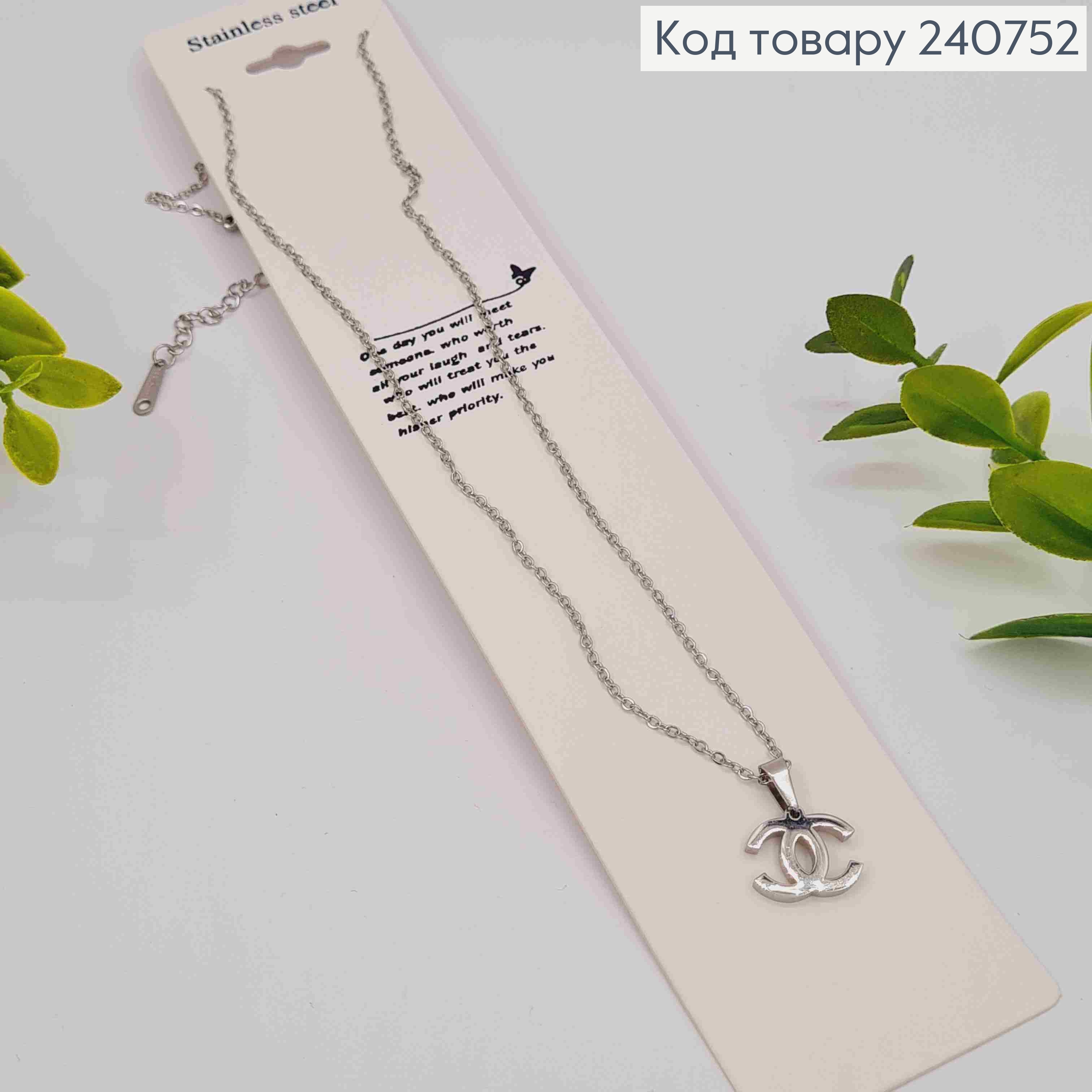 Цепочка серебряного цвета, с подвеской CHANEL (1,1см), 40+5см, сталь Stainless Steel