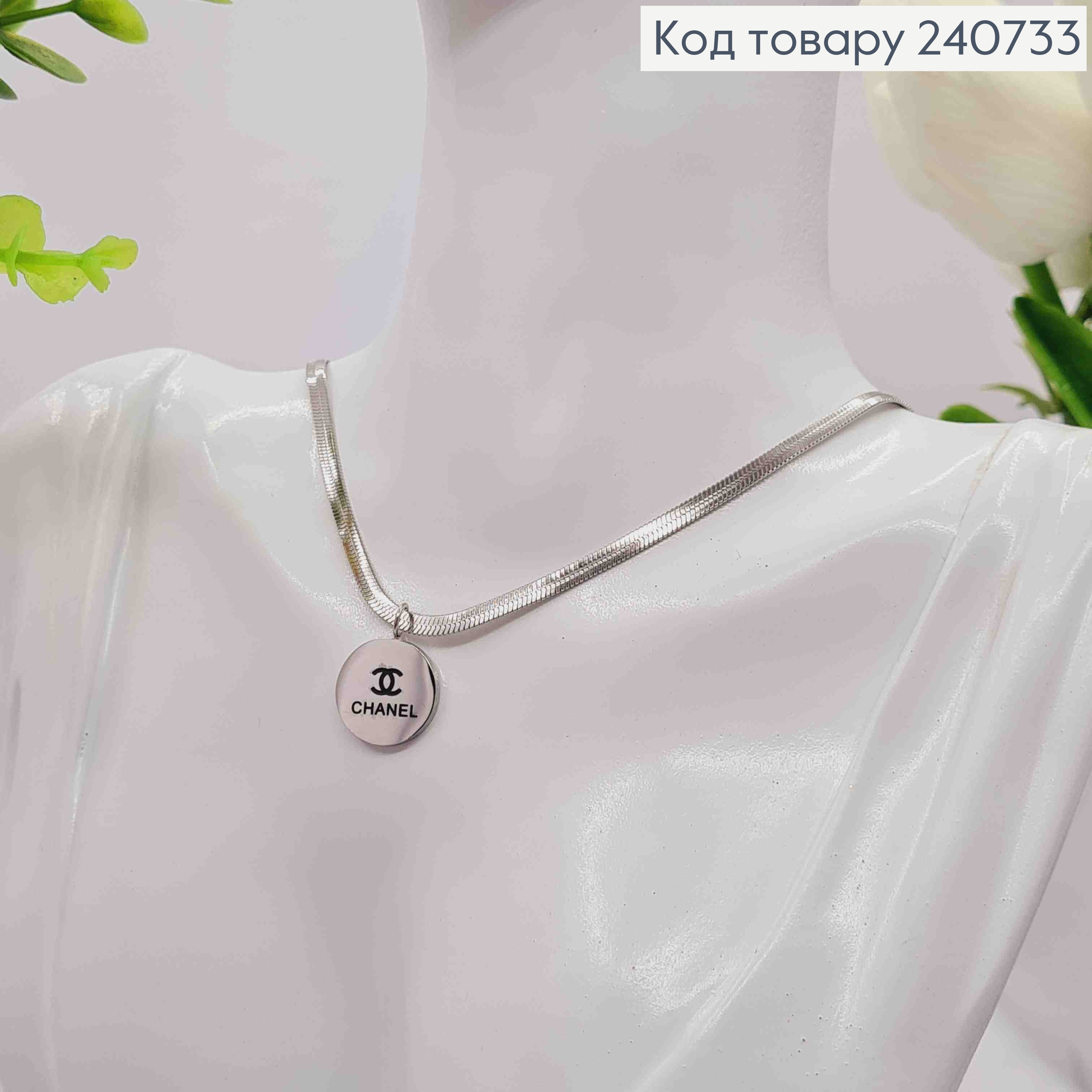 Цепочка серебряного цвета, с подвеской CHANEL (1,1см), 40+5см, сталь Stainless Steel 240752 фото