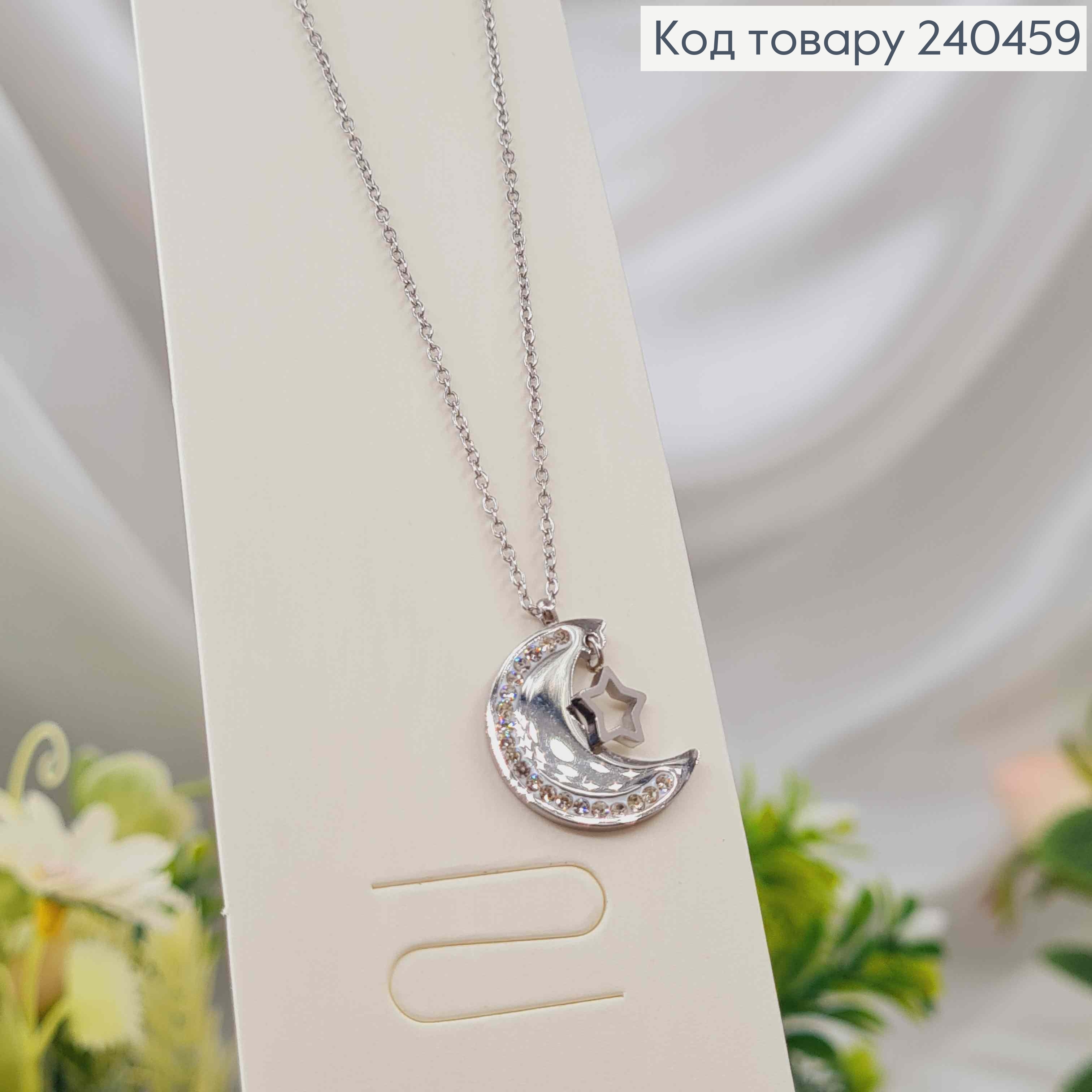 Цепочка серебряного цвета, с подвеской Луна и звездочка с камешками, 40+5см, сталь Stainless Steel