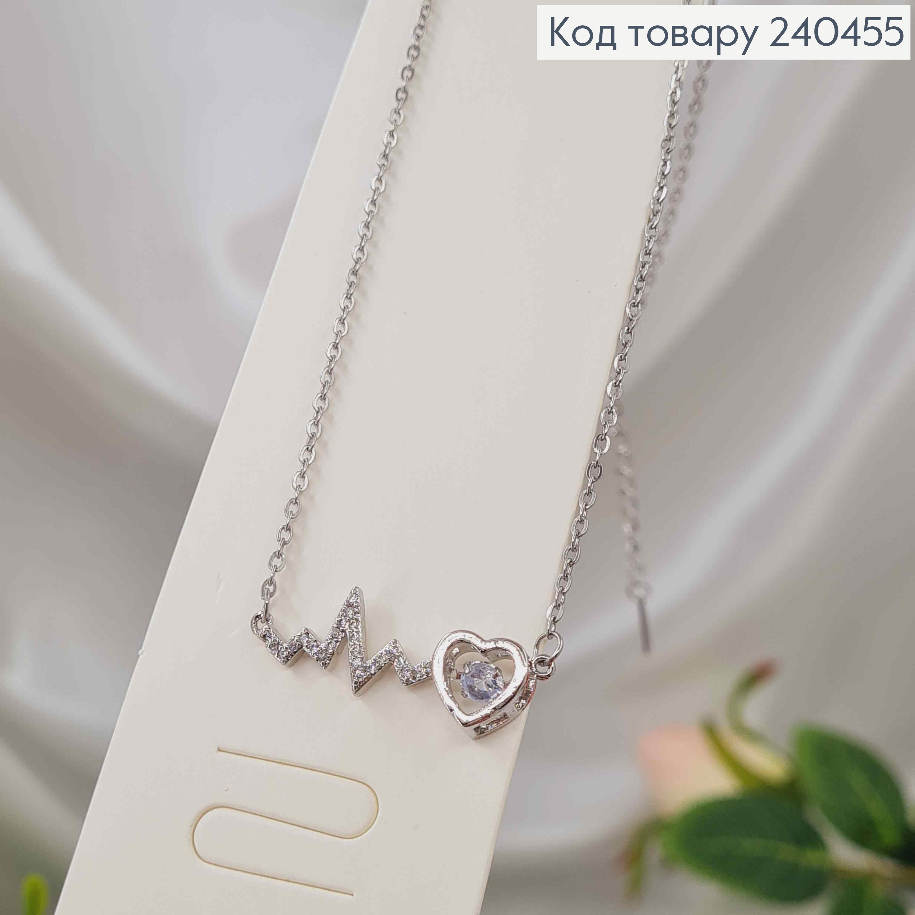 Цепочка серебряного цвета, с подвеской Сердцем и кардиограммой, 40+5см, сталь Stainless Steel