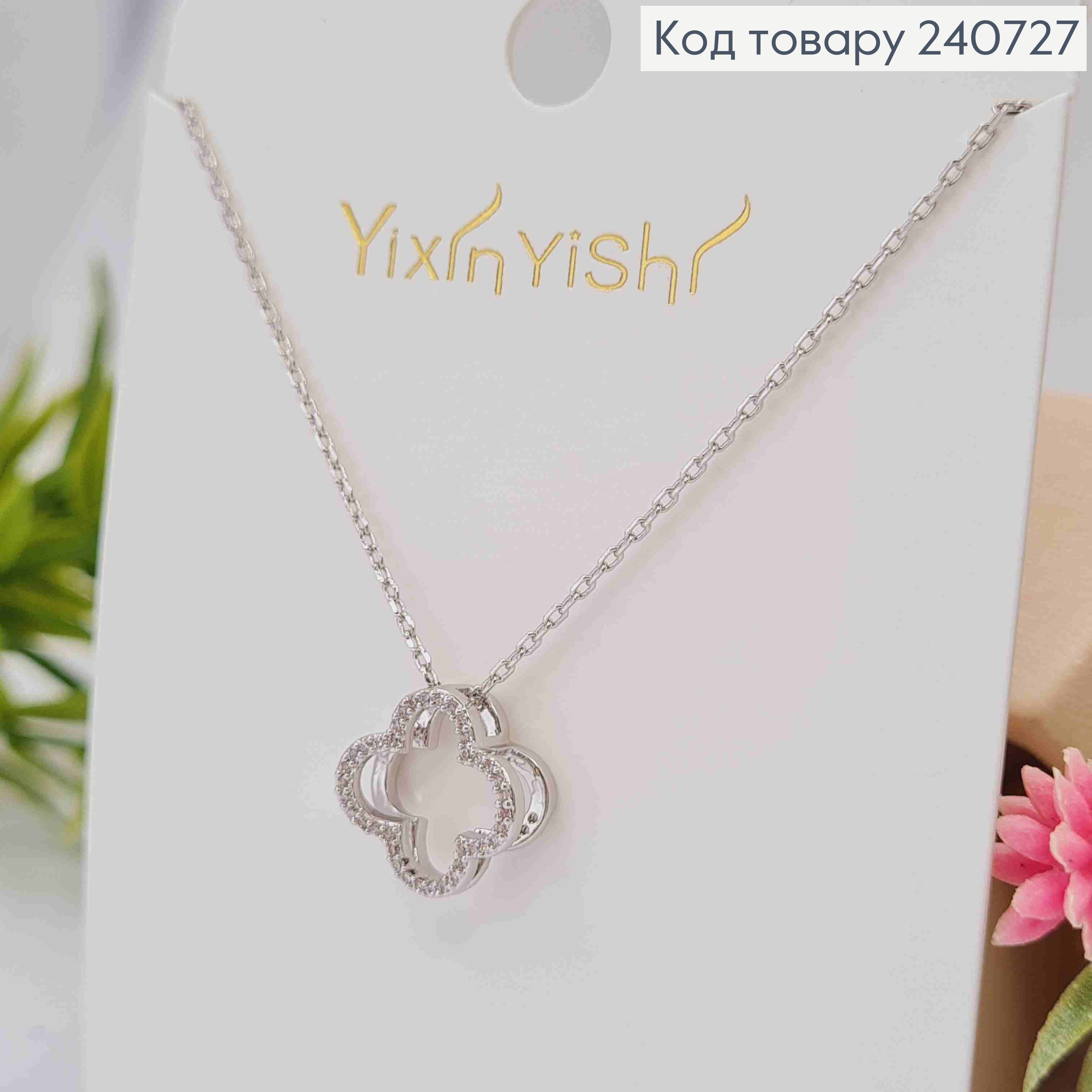 Цепочка серебряного цвета, с подвеской Van Cleef с перламутровой эмалью, 44+5см сталь Stainless Steel 240756 фото