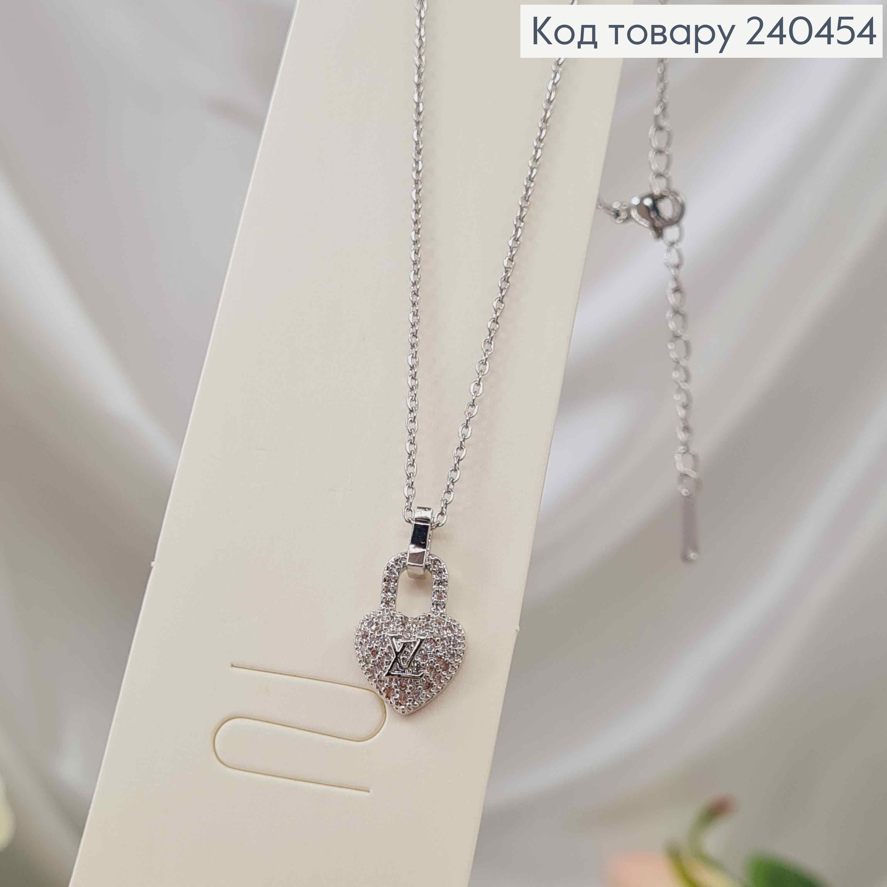 Цепочка серебряного цвета, с подвеской замочком-сердечком, 40+5см, сталь Stainless Steel