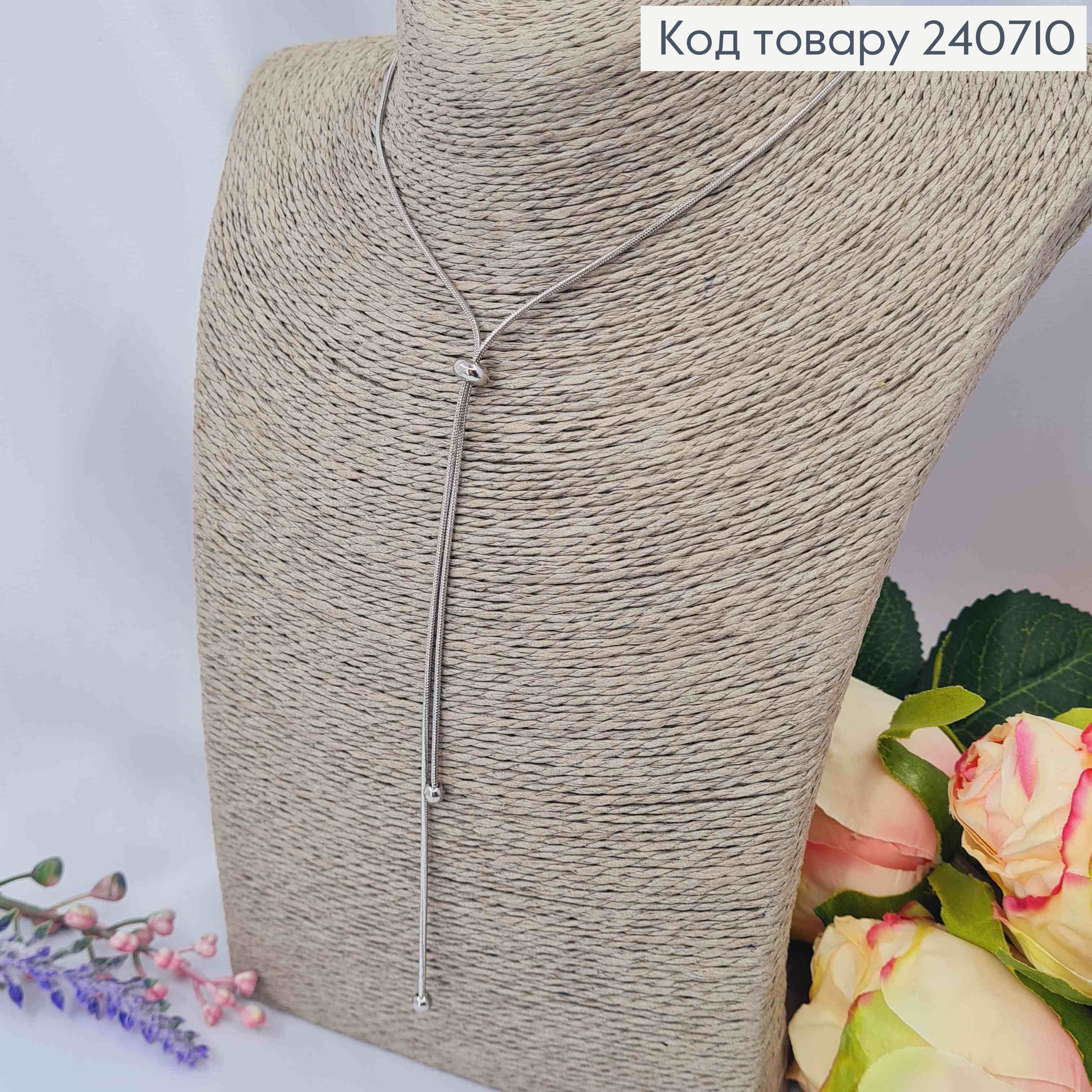 Цепочка с бусинками (регулирующая), серебряного цвета, 66см, сталь Stainless Steel