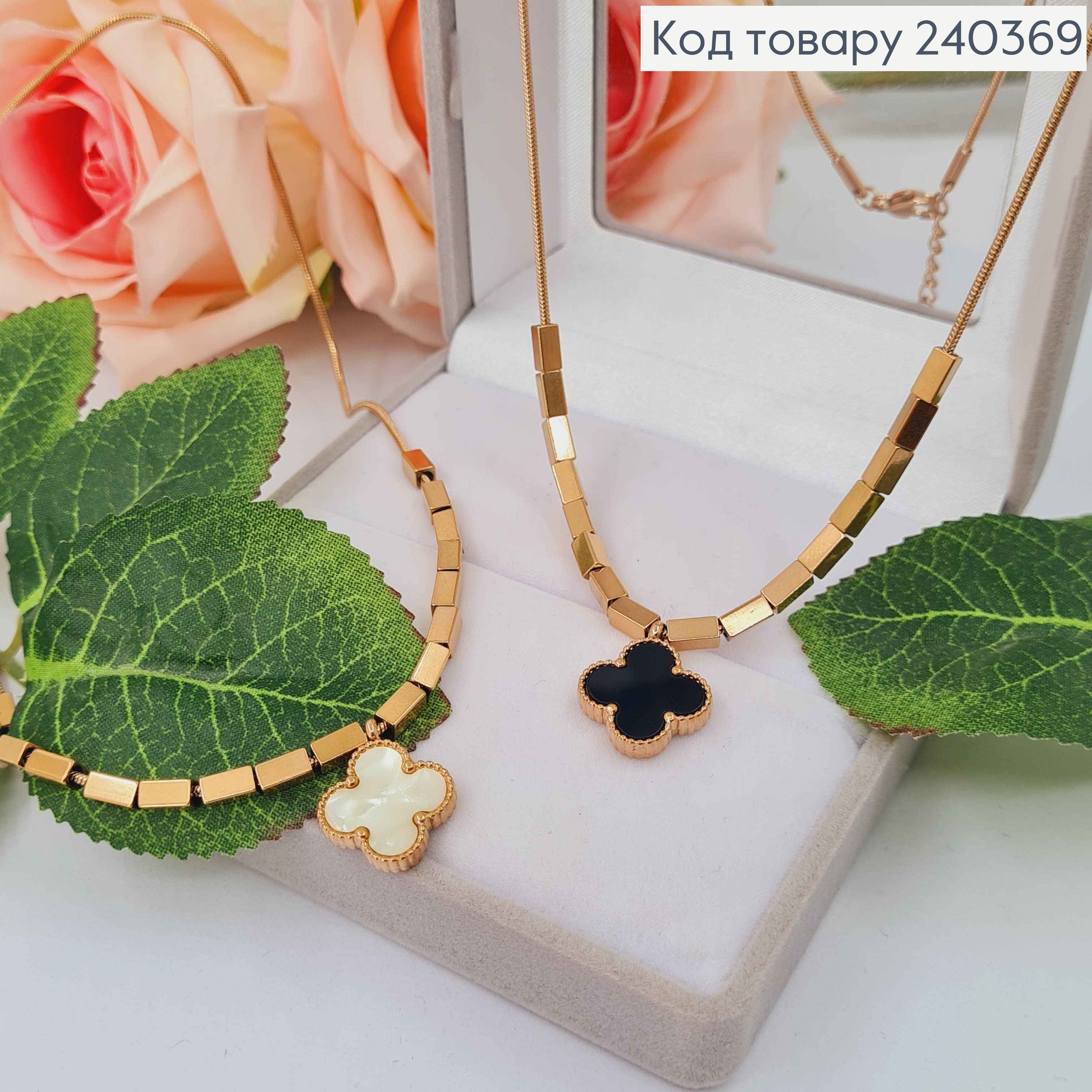 Цепочка с подвеской четырехлистником и прямоугольными шайбочками, дл. 40+5 см, сталь Stainless Steel
