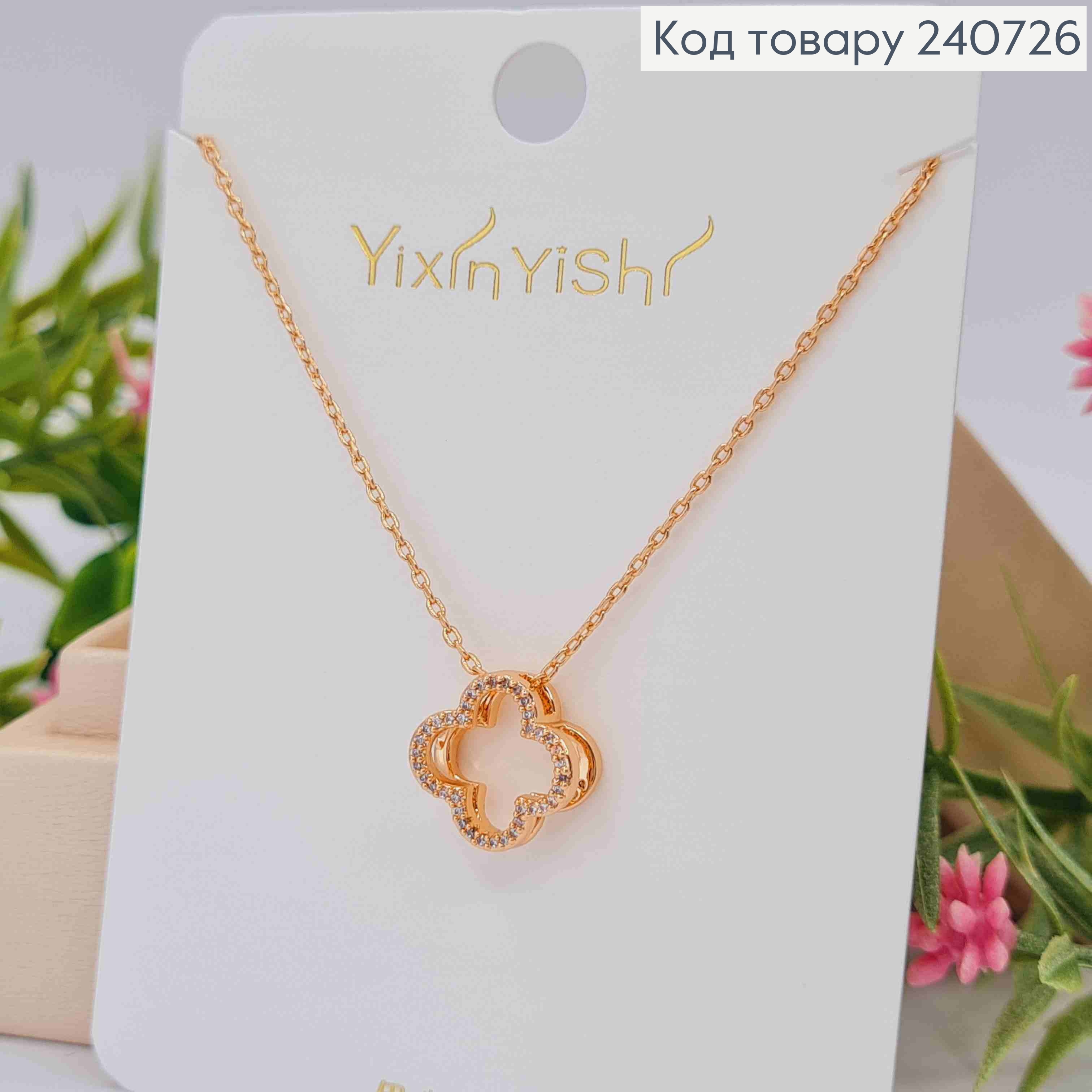 Цепочка медного цвета, с подвеской Van Cleef с перламутровой эмалью, 44+5см сталь Stainless Steel 240755 фото