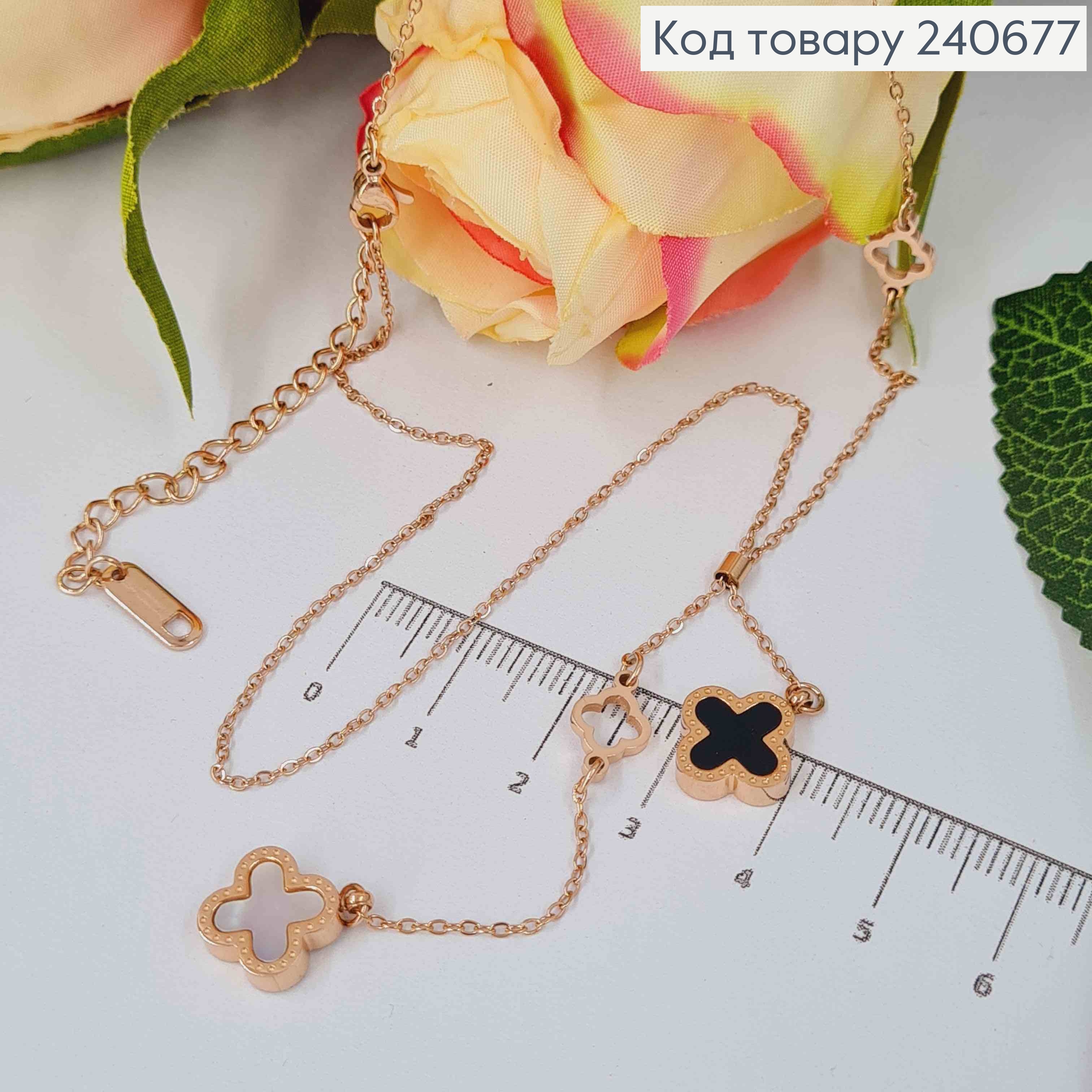 Цепочка медного цвета, с подвесками Van Cleef с перламутровой эмалью, 43+5см, Stainless Steel 240759 фото