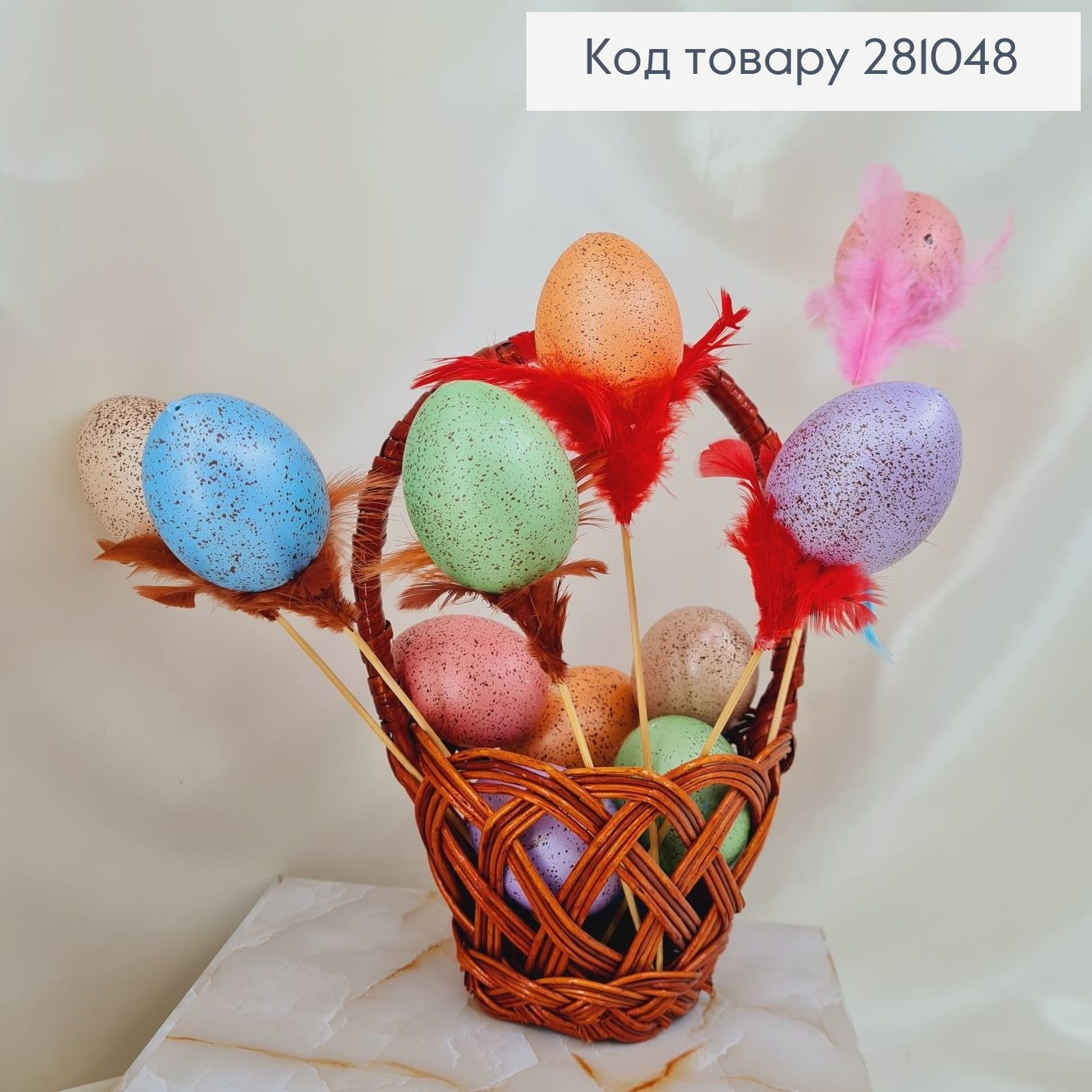 Набор цветных яиц с перьями на деревянной палочке 6 шт 4х6х23см