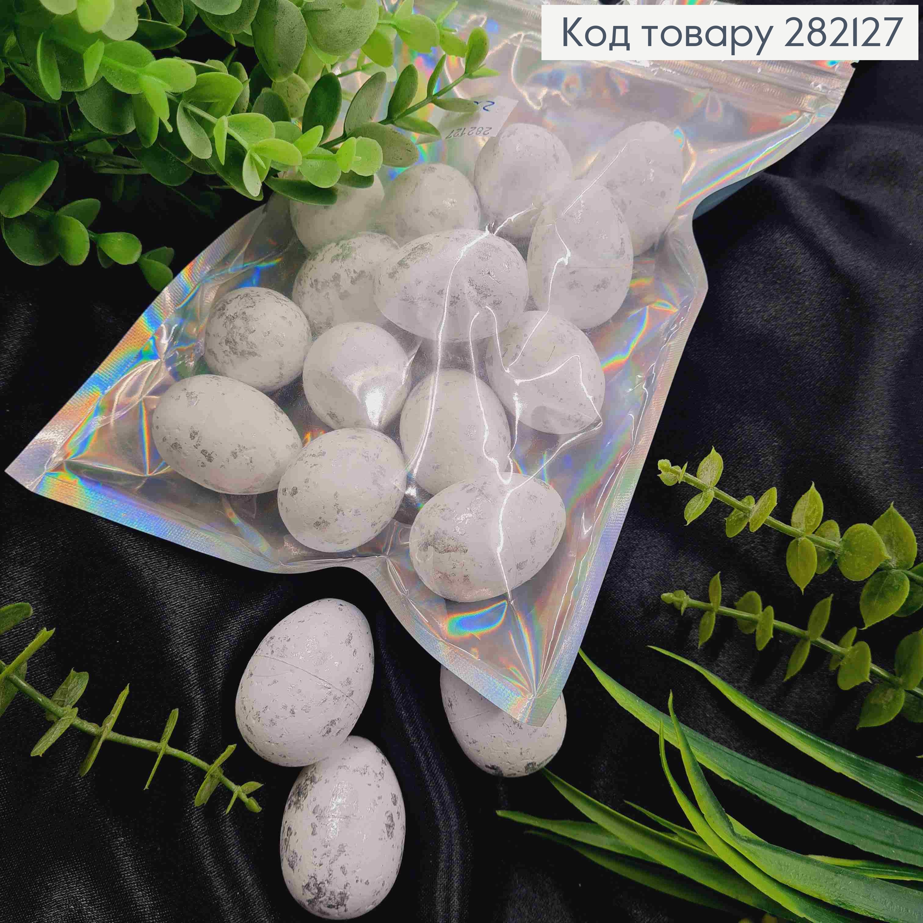 Перепелиные яйца (пластик), на петельке, Белые/Серые в точку, 12шт/уп, 4*2,8см 282210 фото