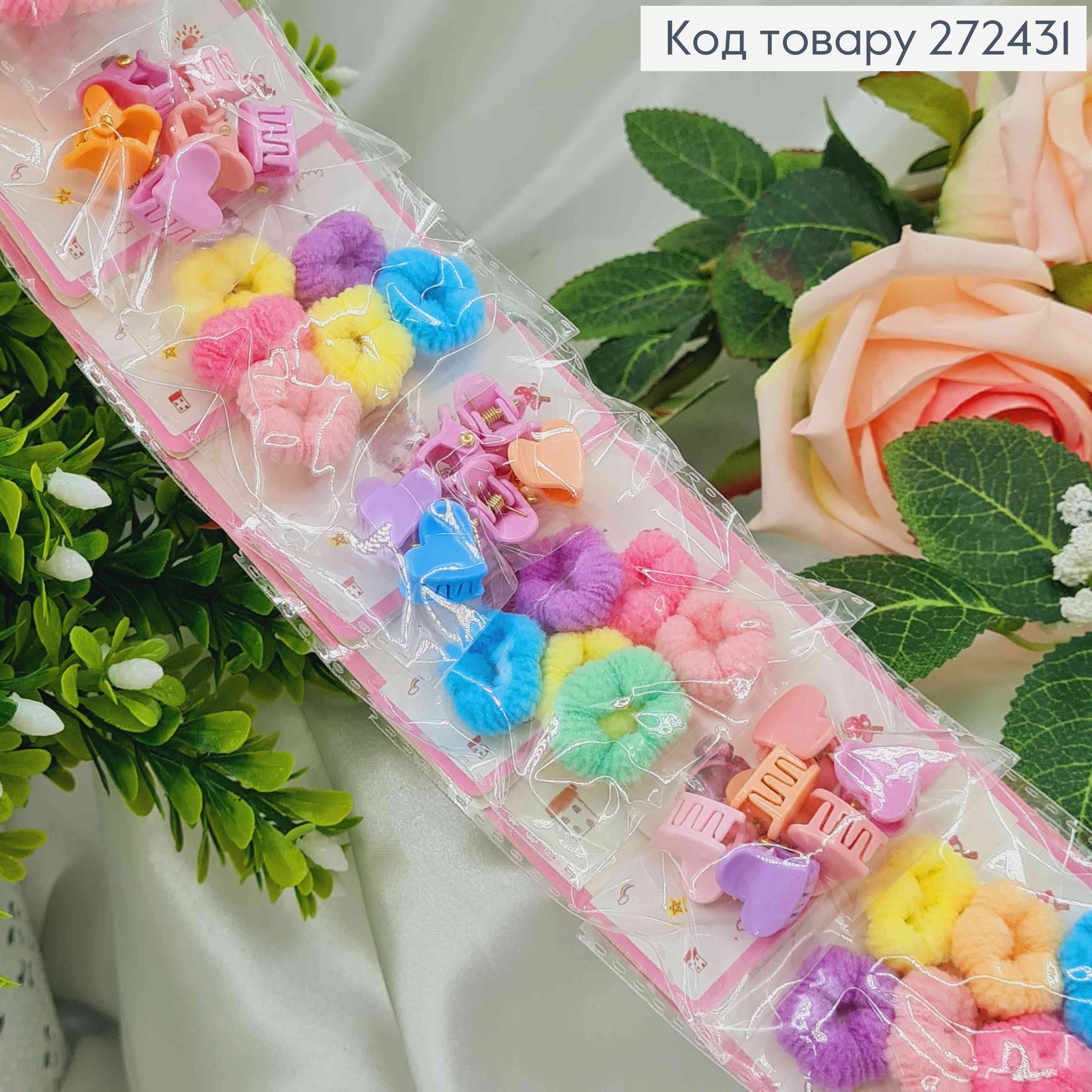 Набор детских резинок та крабиков с сердечками, 10уп/наб.