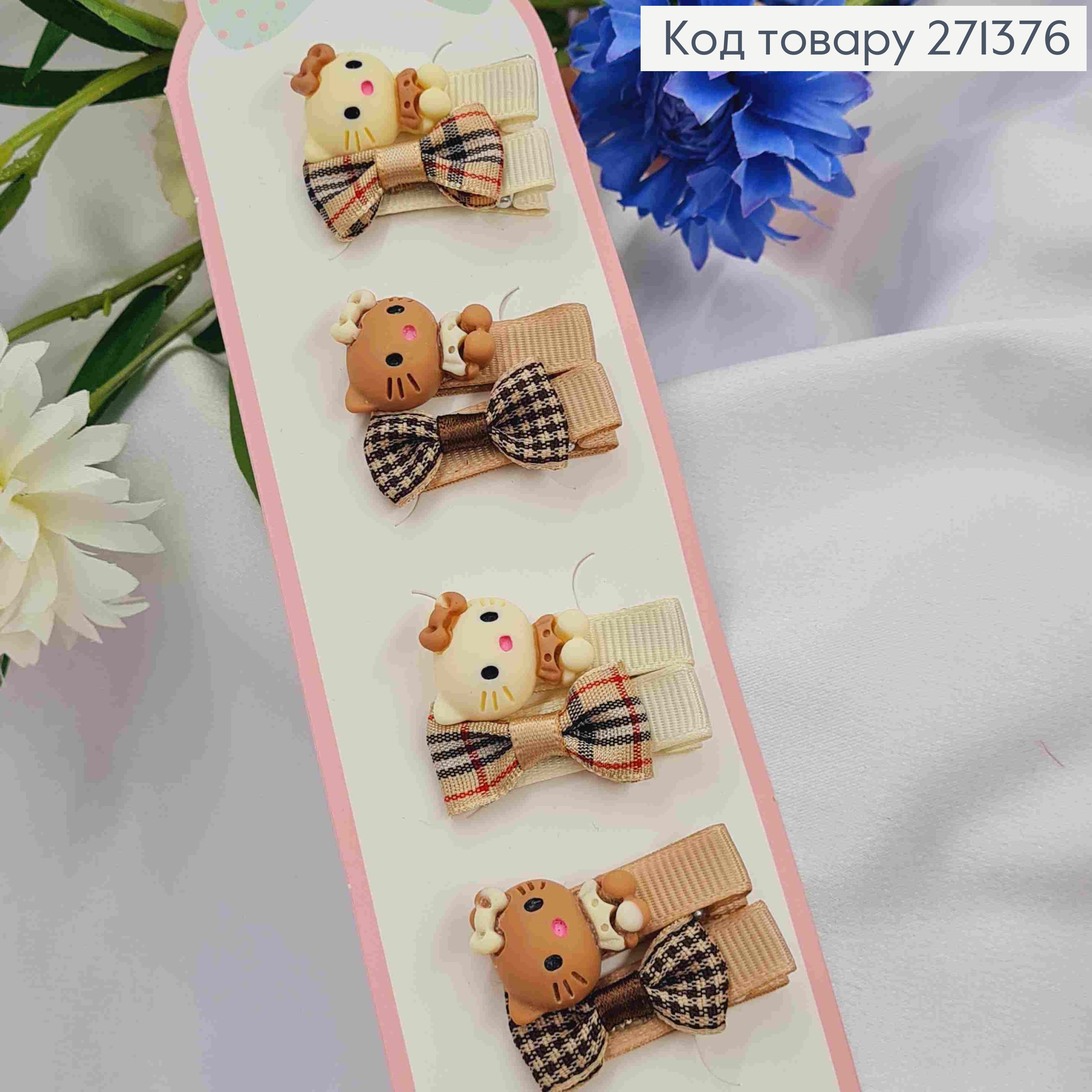 Набор детских заколок (20шт) КИТТИ+бантик, размер 2,5*2см, заколка стрела 3,5см, цвета бежевые.