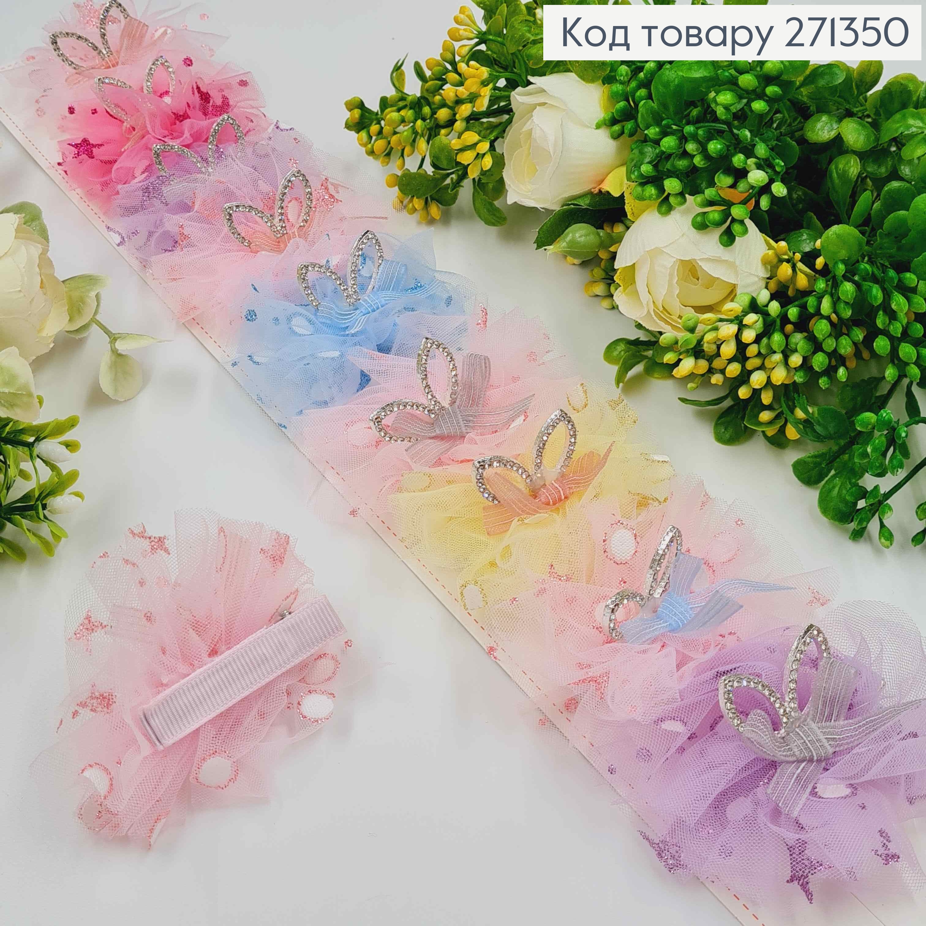 Набор детских заколок, клев, "Зайчатам" с фатином в блестках и бантиком, 10 шт/наб.