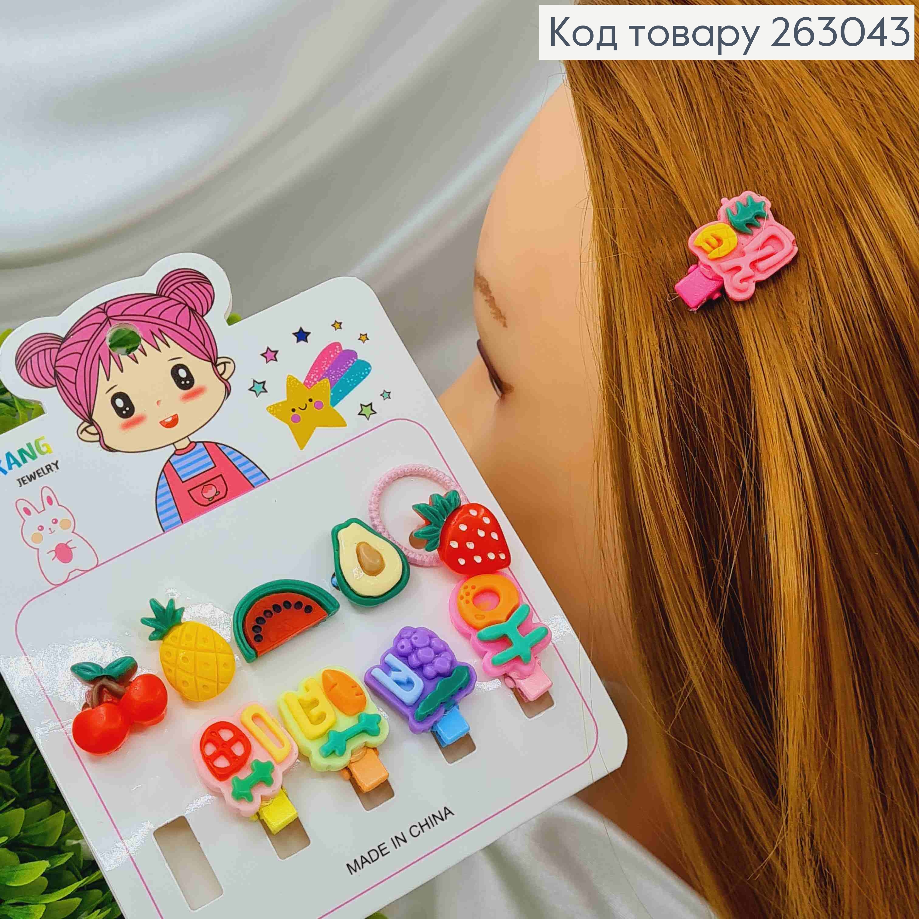 Набор детских шпильок 5шт стрела и 5шт резинок , "Фруктовый Микс", 10шт/наб.
