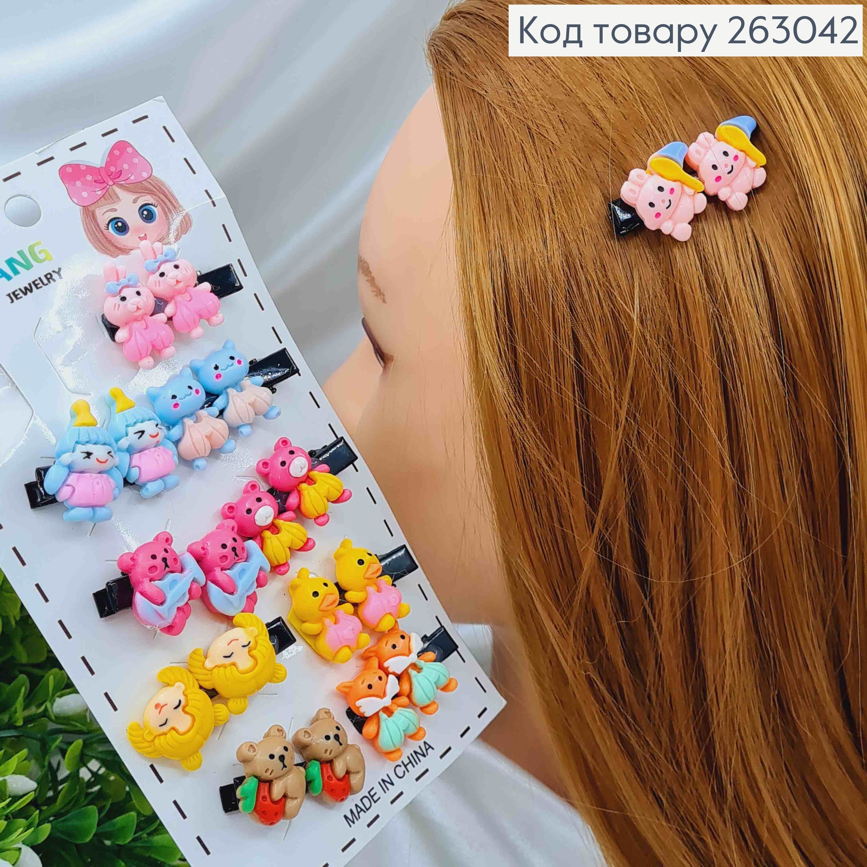 Набор заколка стрела (8шт), "Веселые Зверюшки", Пастельные цвета, заколка 2см, зверьки 1,5*1,5см 271522 фото