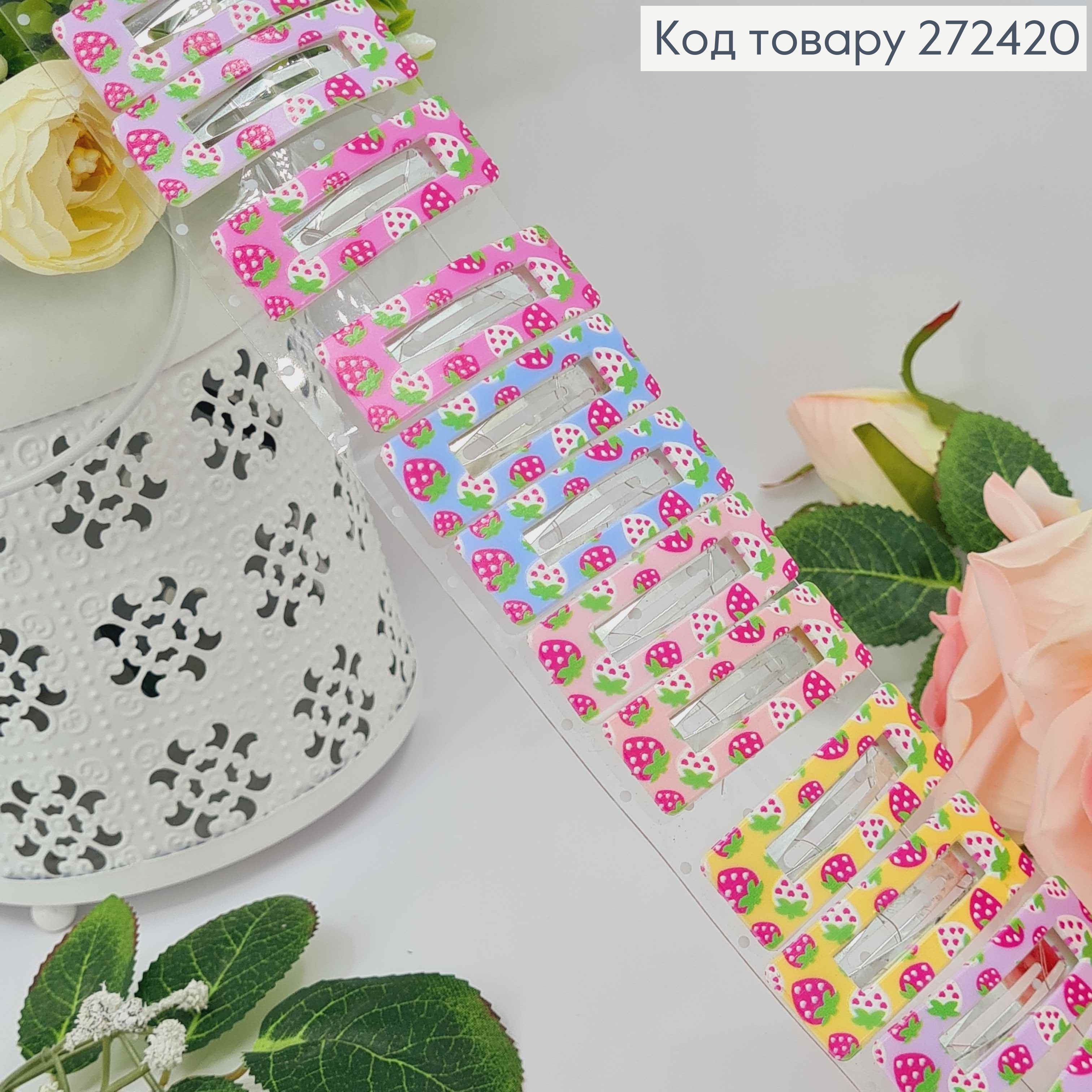 Набор детских заколок тик-так, Прямоугольные, С Веселыми клубничками, 5,5см, 20шт/уп