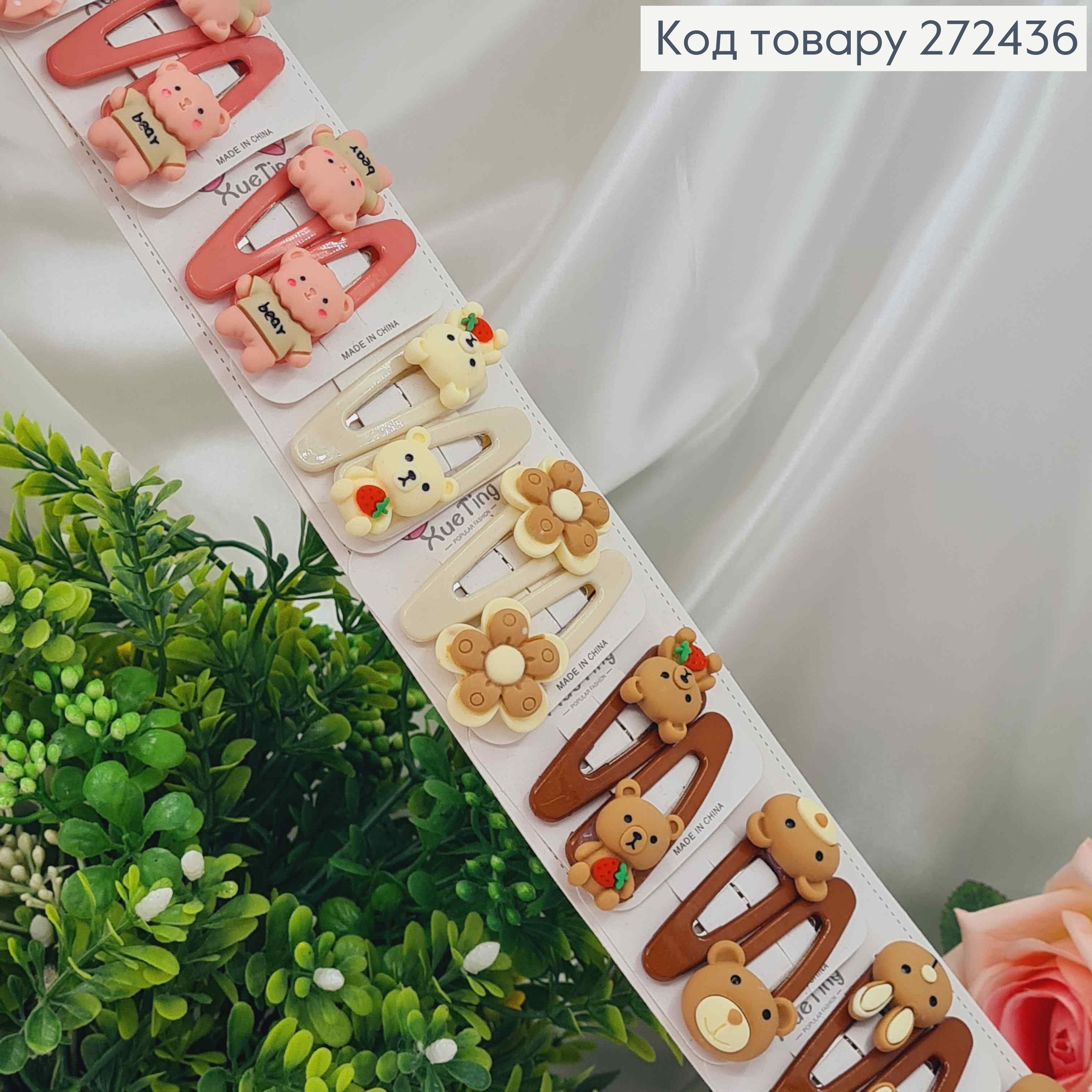 Набор детских заколок, тик-так, с Бантиками и Мишками, 20 шт/наб.