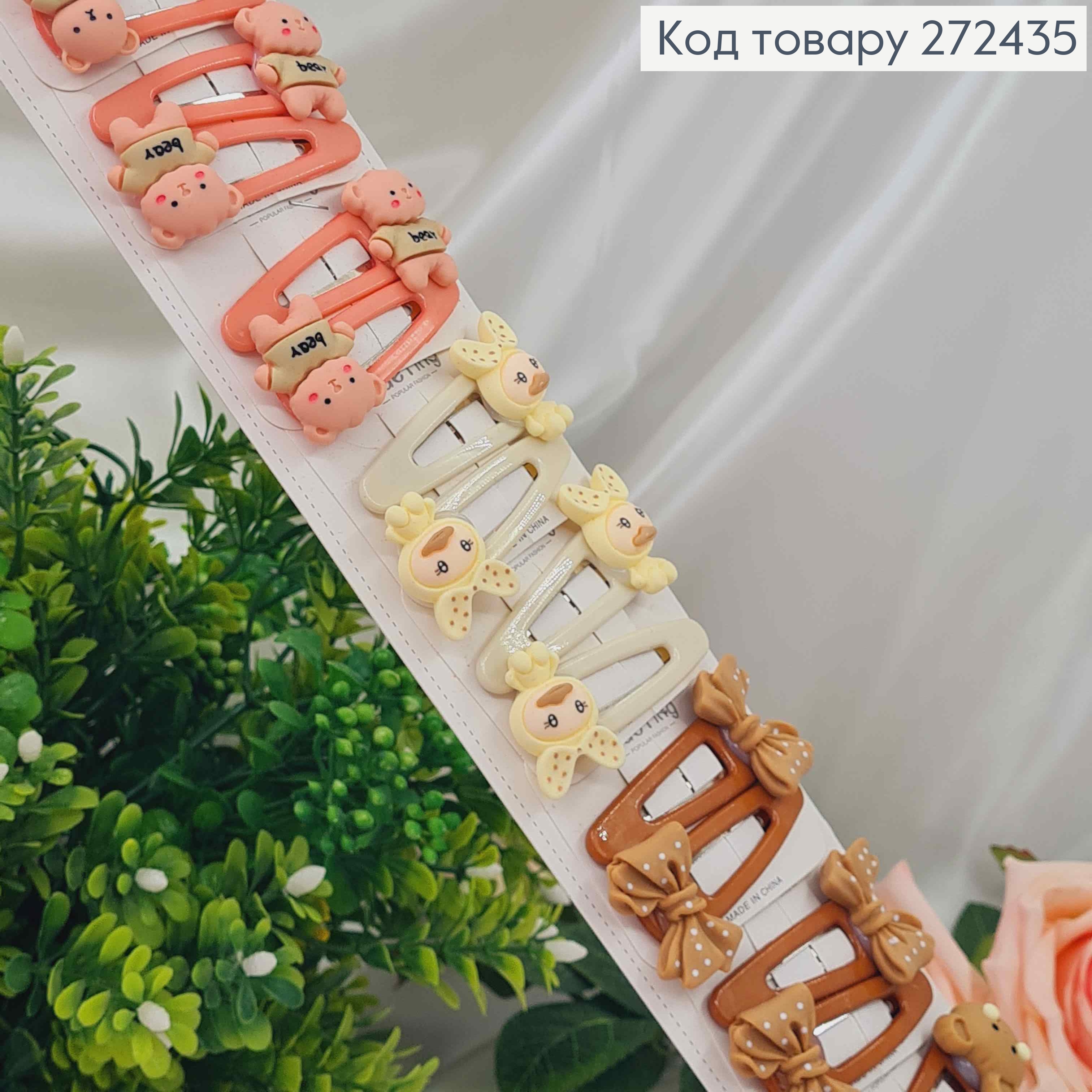 Набор заколка стрела (8шт), "Веселые Зверюшки", Пастельные цвета, заколка 2см, зверьки 1,5*1,5см 271522 фото