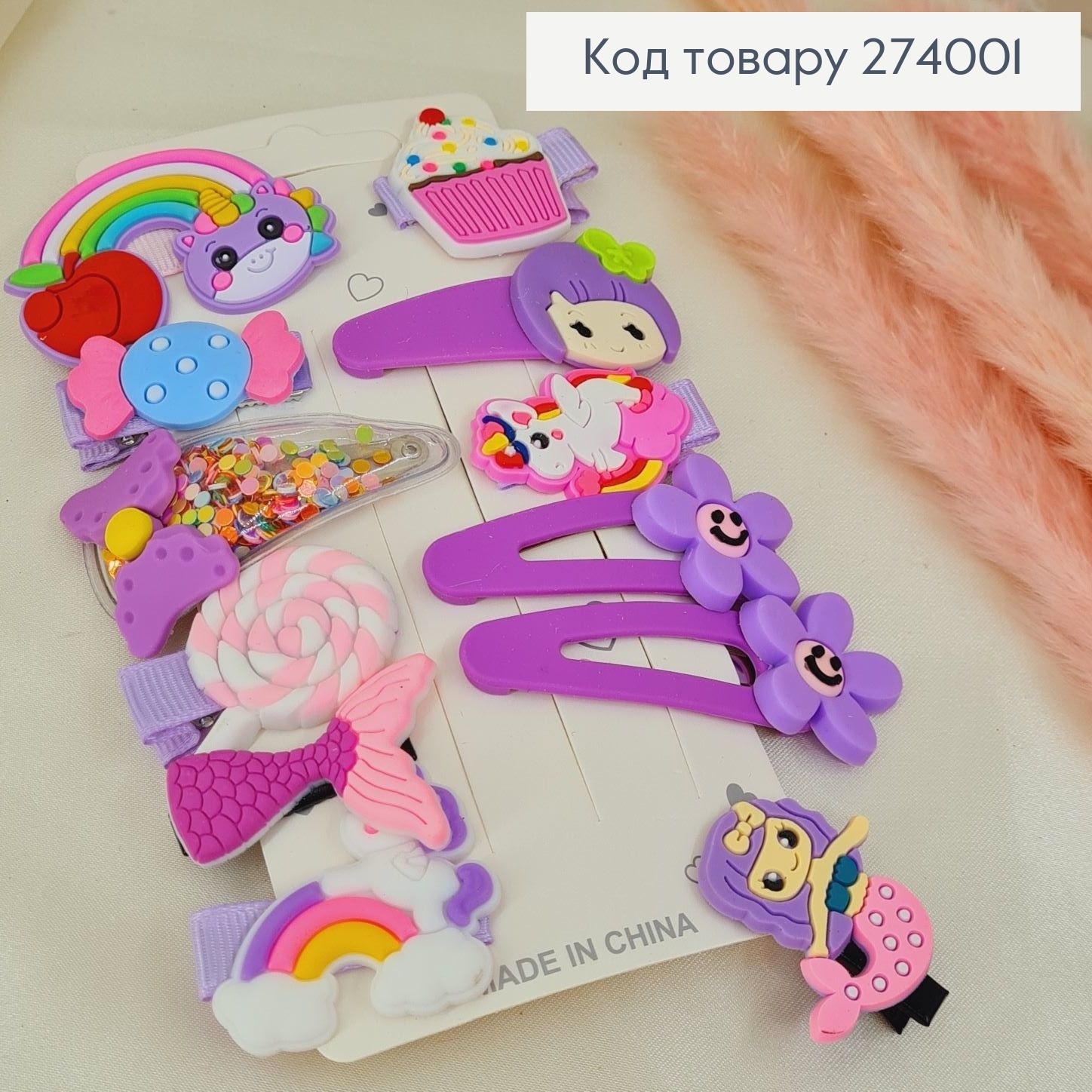 Набор заколка стрела (8шт), "Веселые Зверюшки", Пастельные цвета, заколка 2см, зверьки 1,5*1,5см 271522 фото