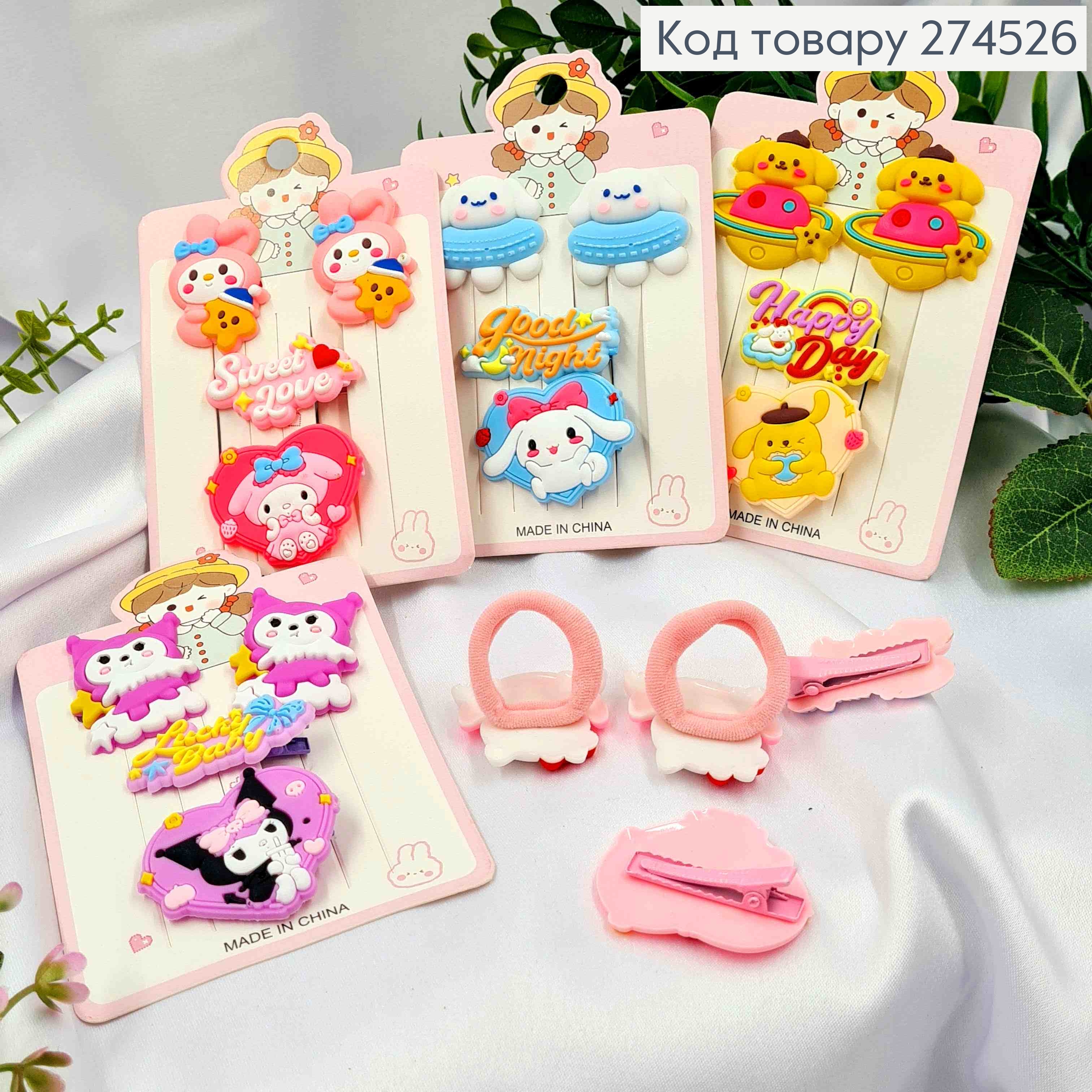 Набор детских: резинки Шнурок/Силиконовая + Крабики + Заколка стрела, Пастельные цвета в ассорти 251091 фото