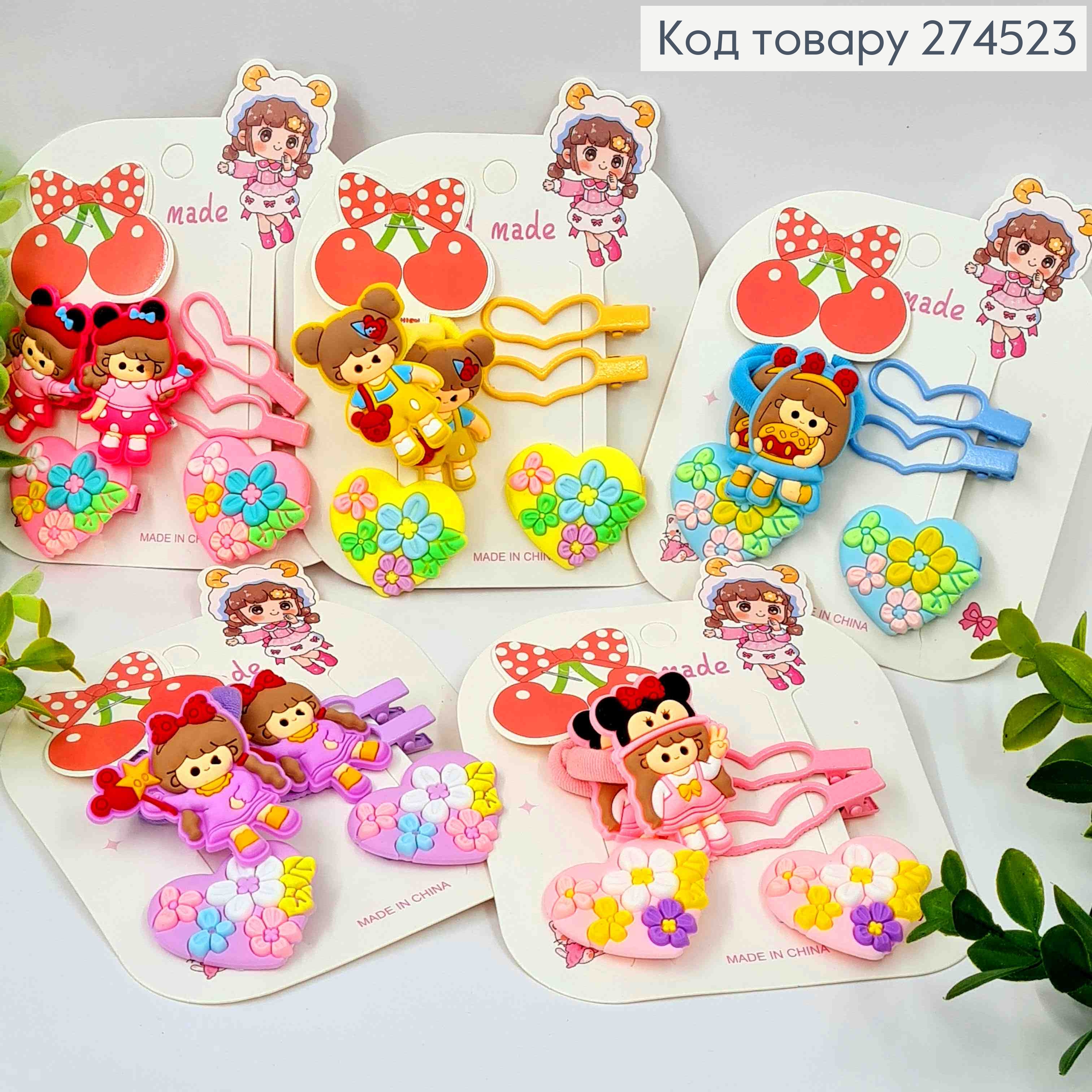 Набор заколка тик-так (20шт), "Сердечко" с Камешками, Пастельные цвета, заколка 4,5см, сердце 2,5см 271517 фото