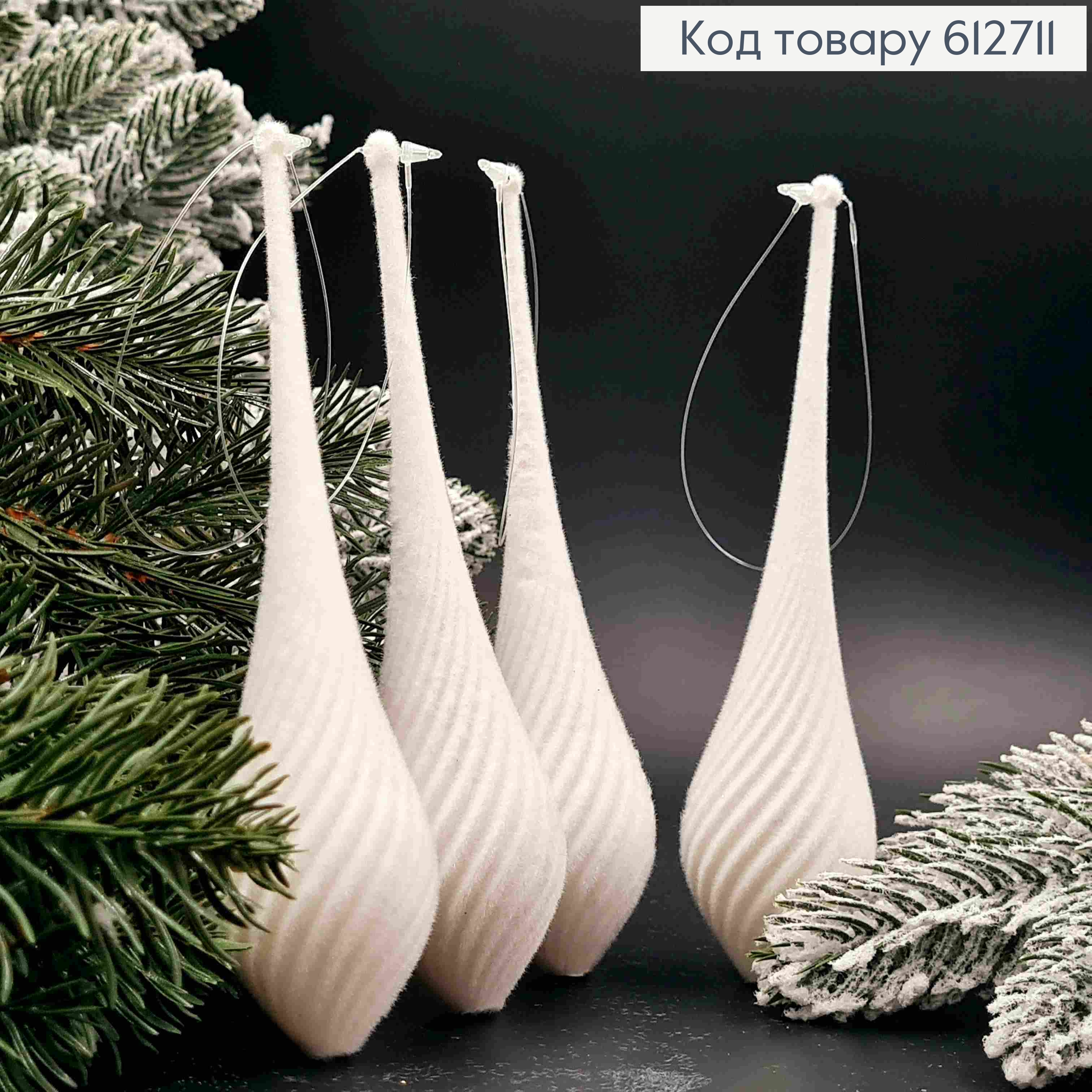 Набор фигурок (4шт) бархат "КАПЛЯ", БЕЛАЯ, 15*4см, украшение новогоднее пластиковое, Украина