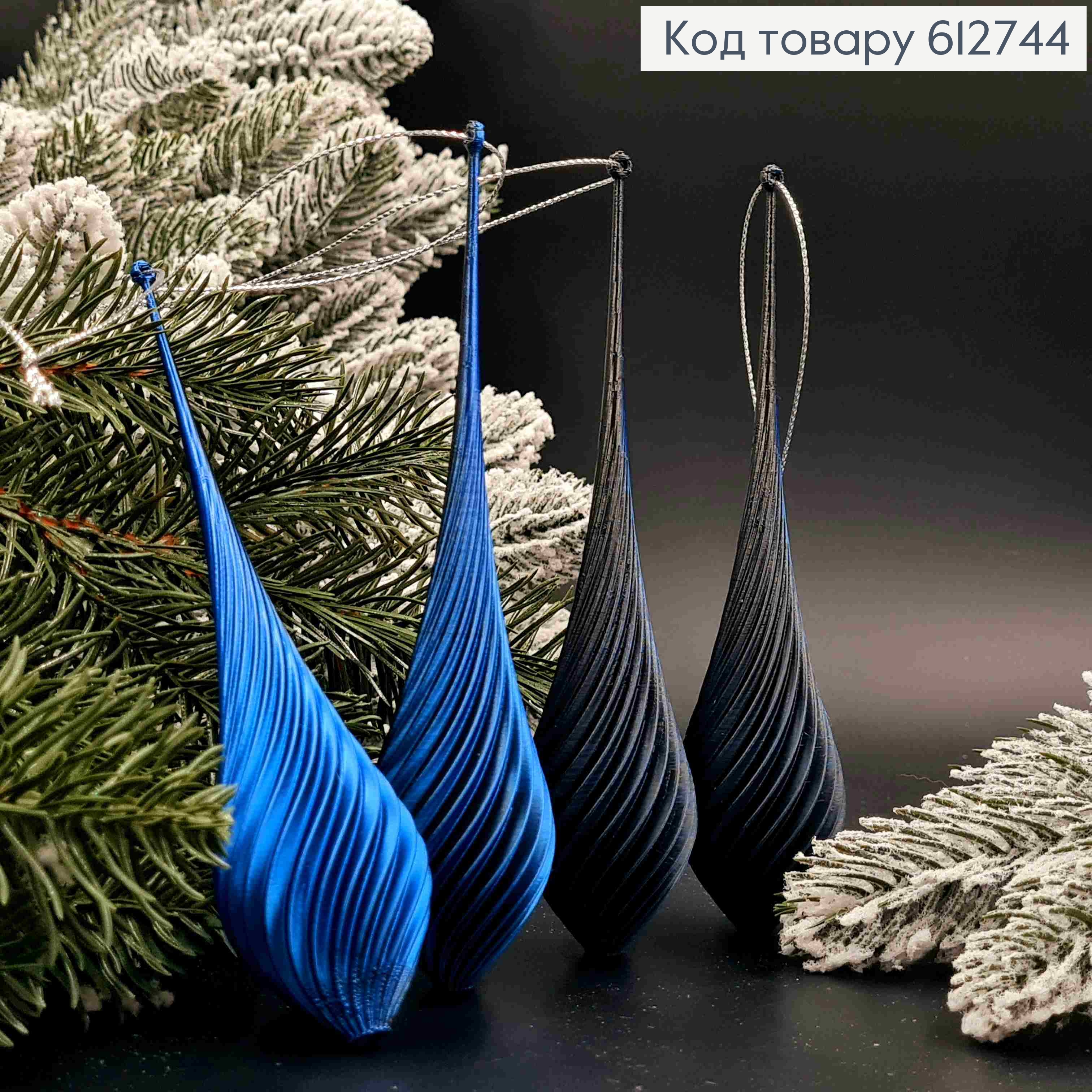 Набор фигурок (4шт)мираж "КАПЛЯ",СИНЕВО-ЧЕРНЫЕ, 15*4см, украшения новогодние пластик, Украина