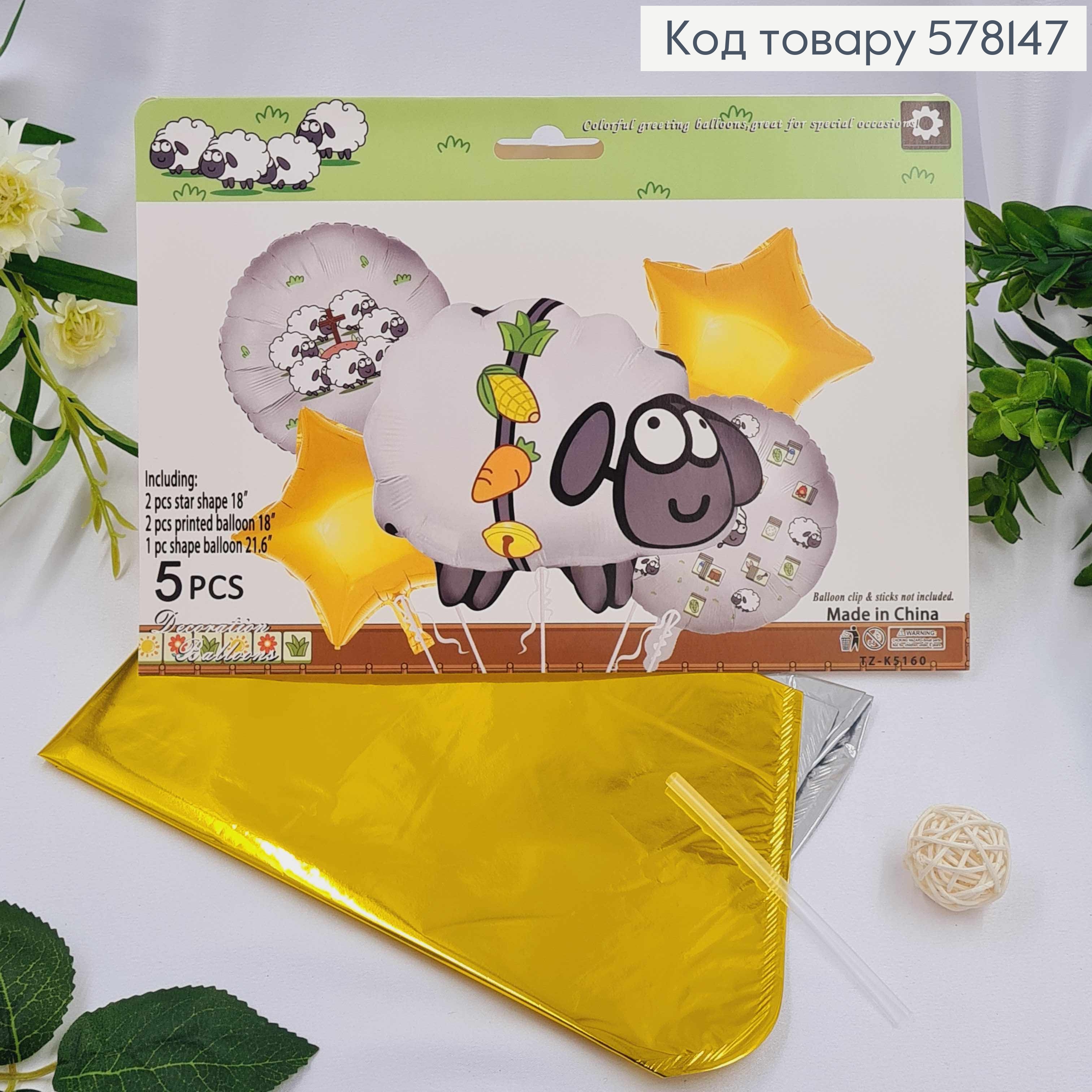 Набор фольгированных шаров "Баранчик Шон", Звездочки 2шт, круглые 2шт, Шон 1шт.(21,6")