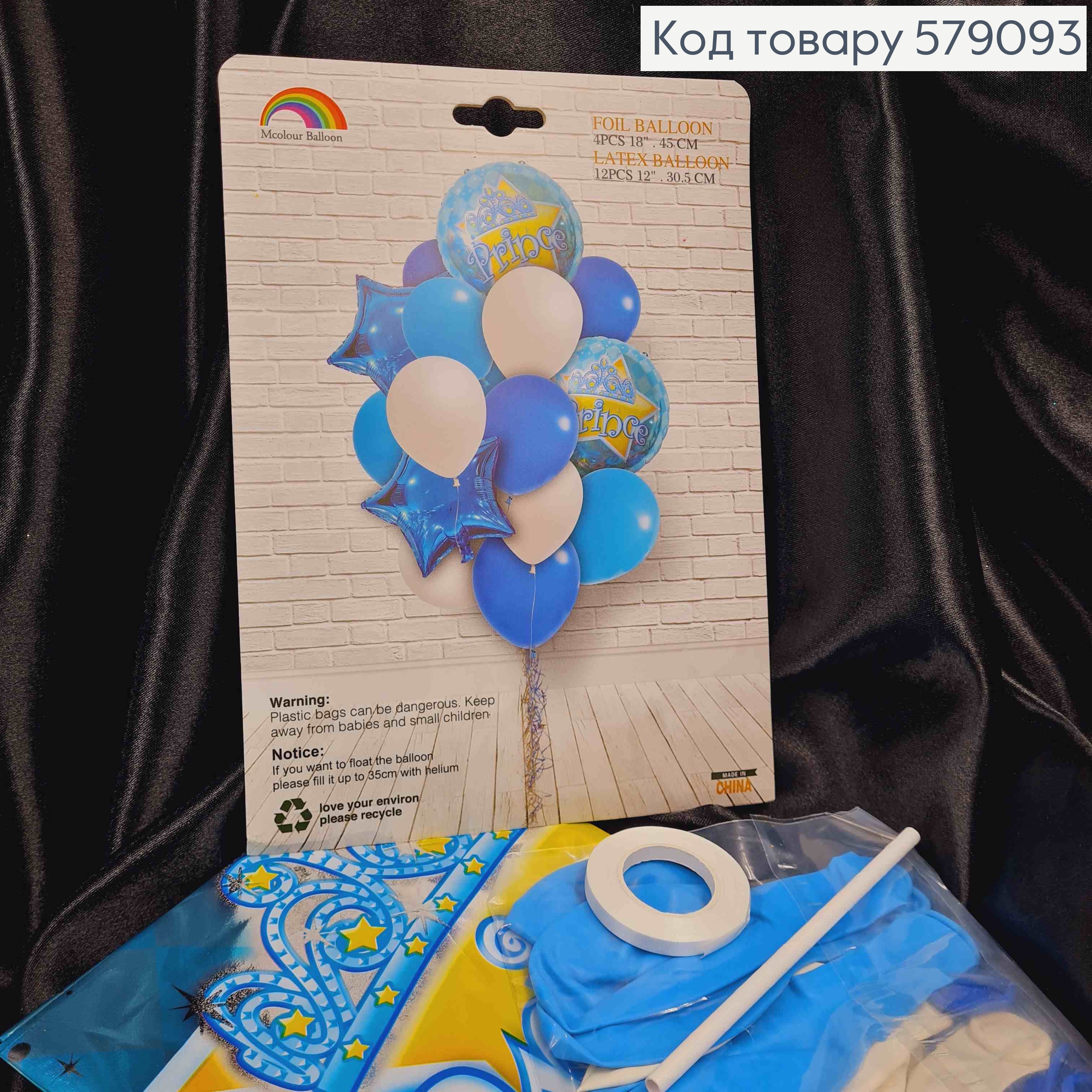 Набор фольгированных шаров, Голубых, "Prince" (фольга/2шт), Звезда (фольга/2шт), Латексные (12шт)