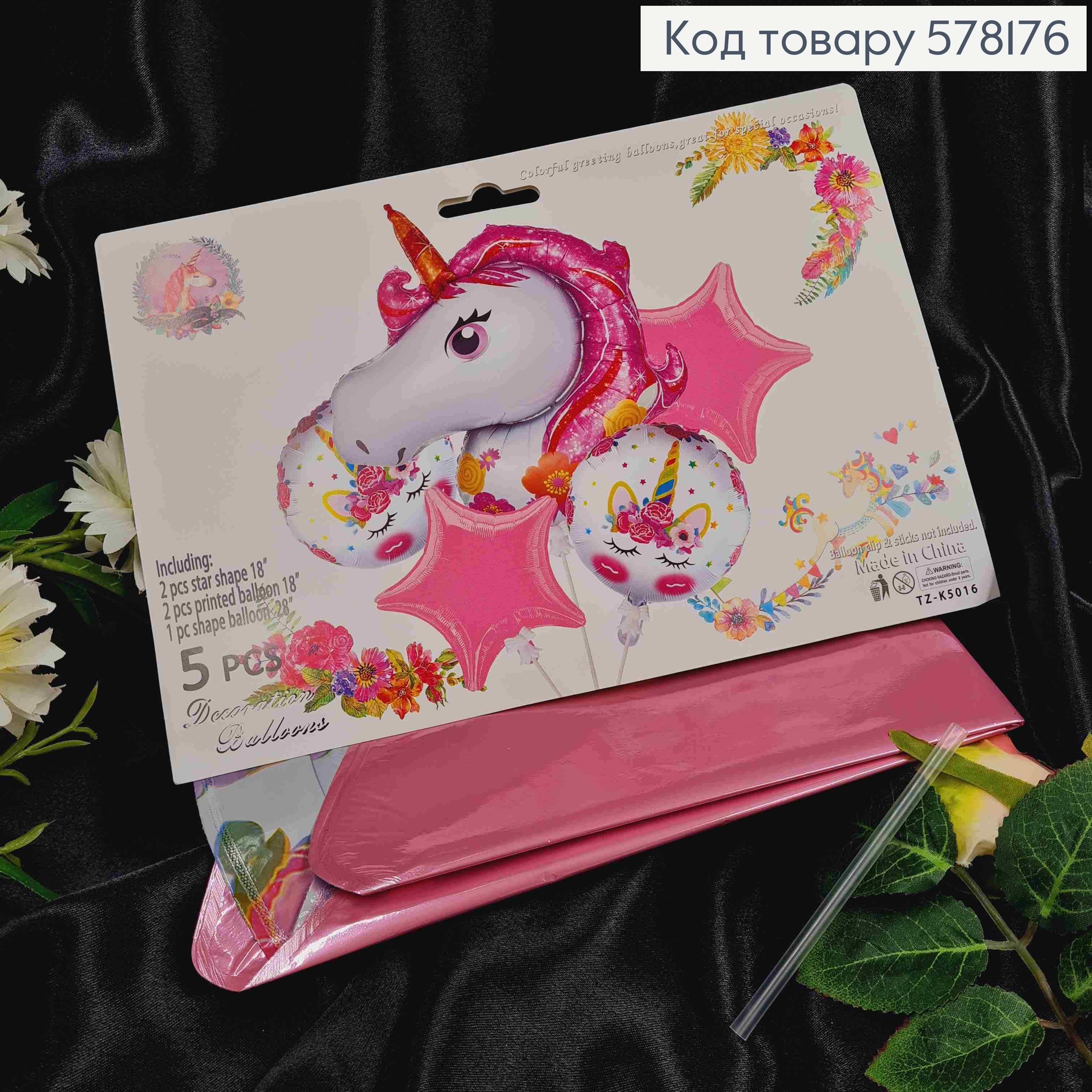 Набор фольгированных шаров, "Единорог", Звезды (2шт), Круглые (2шт), Единорог (1шт/28'')