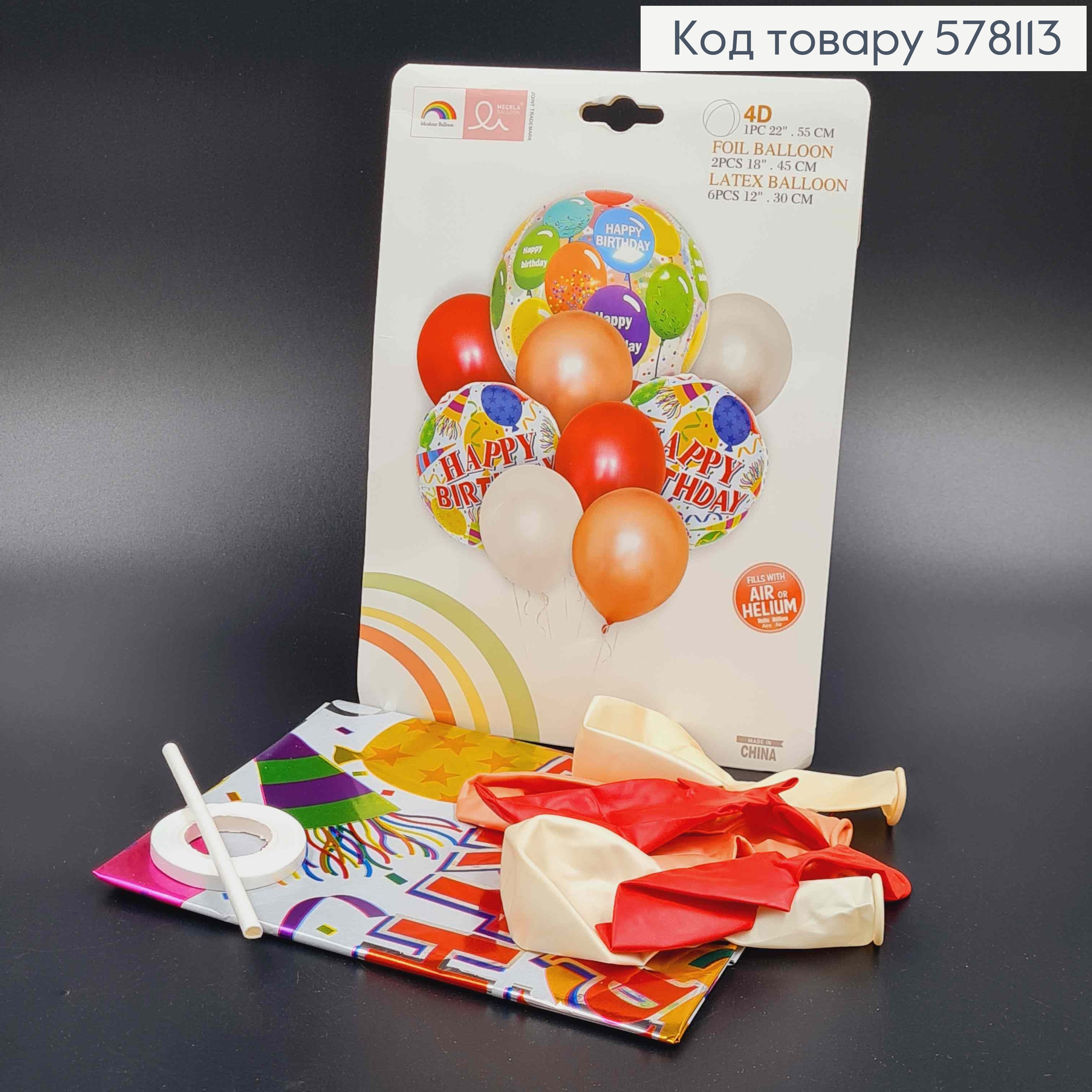 Набор фольгированных шаров "Happy Birthday", 1шт(4Д 22'')+2шт(18'')+6шт(латексные12'')