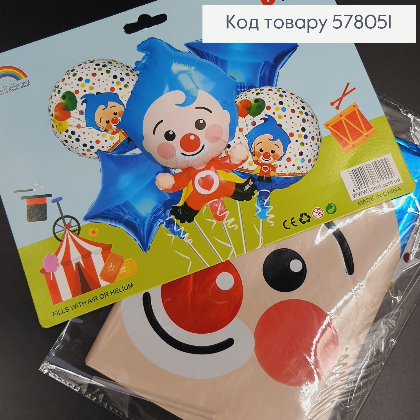Набор фольгированных шаров "Клоун", 4шт+1шт(клоун)