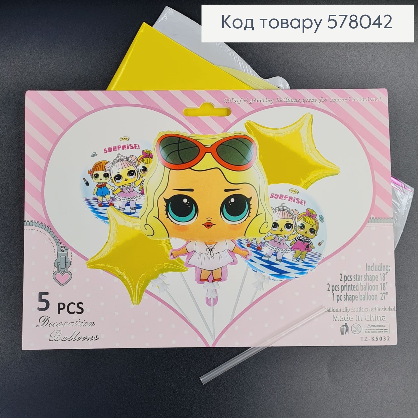 Набор фольгированных шаров "Кукла ЛОЛ", 4шт(18")+1шт(кукла), Лялечка 27"